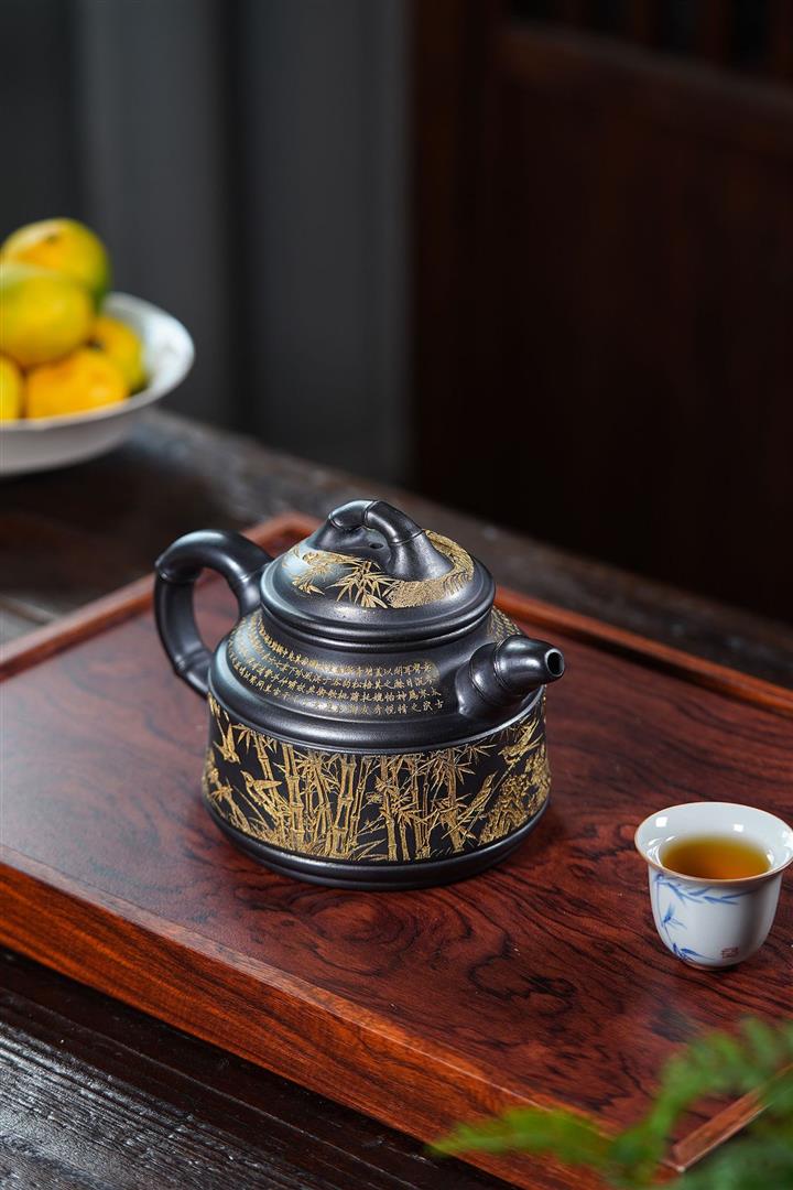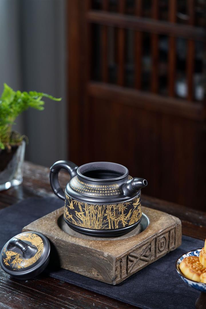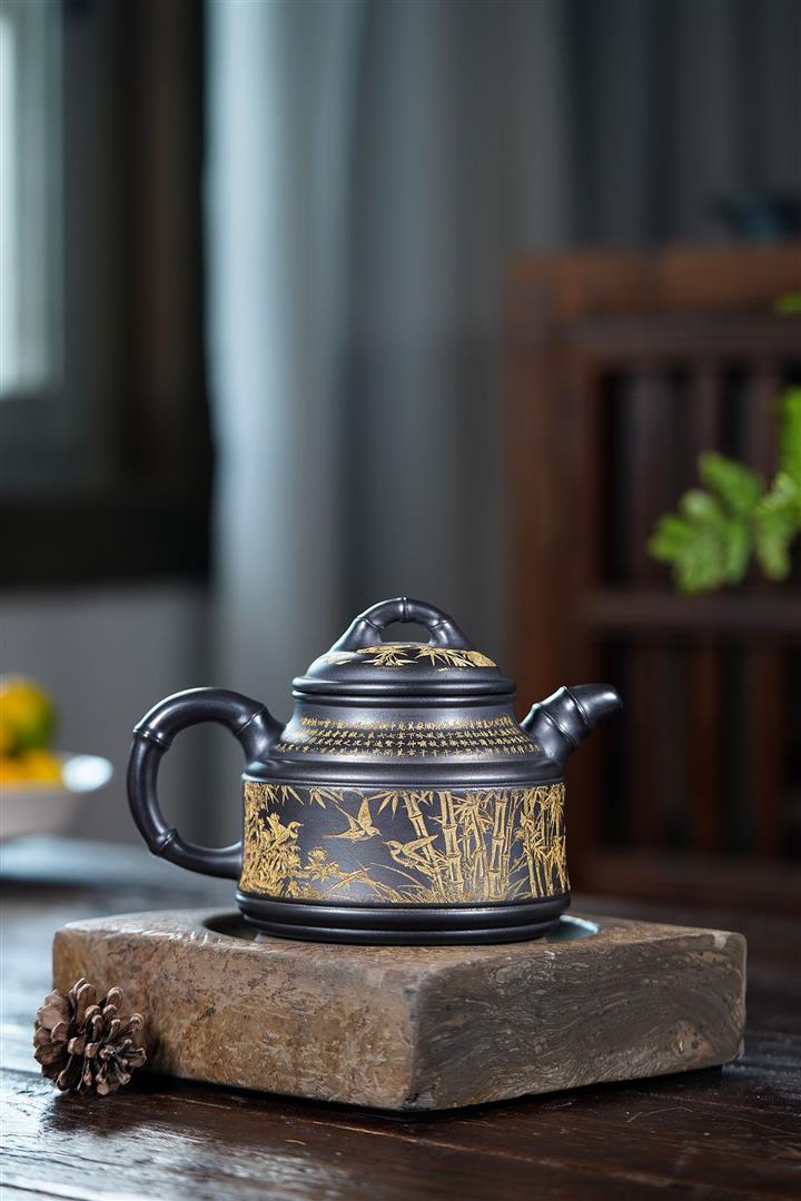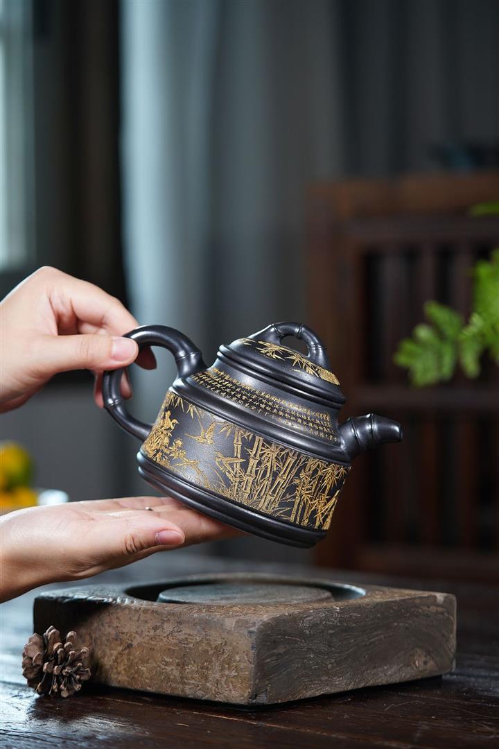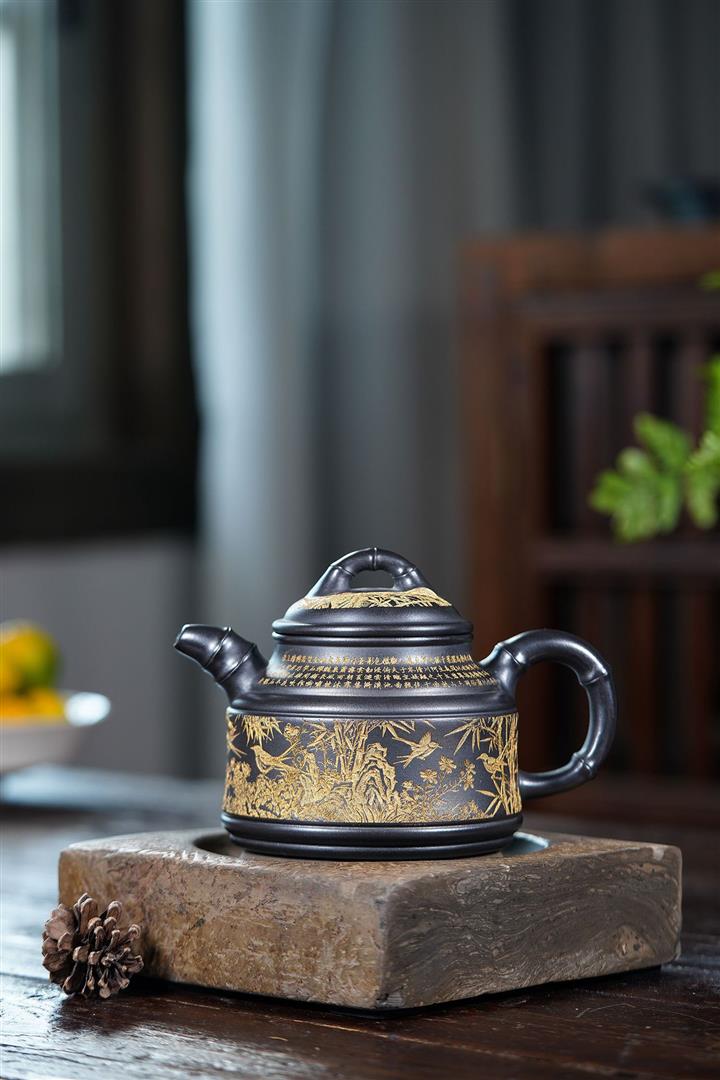 690cc原礦石黃高竹鼎茶壺POT8861