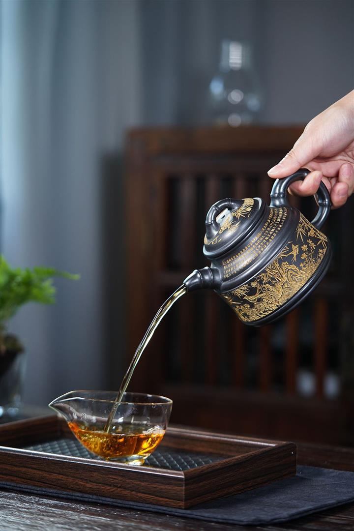 【泥料特點】砂土氣重,似淳實農民,日久使用,漸露鋒芒,養成變化,溫潤莊重。紫砂是壹種雙重氣孔結構的多孔性材質,氣孔微細,密度高。用紫砂壺沏茶,不失原味,且香不渙散,得茶之真香真味。紫砂使用越久,壺身色澤越發光亮照人,氣韻溫雅。紫砂壺長久使用器身會因撫摸擦拭,變得越發溫潤光澤。