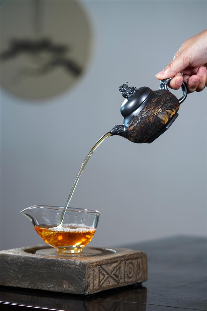 【泥料特點】砂土氣重,似淳實農民,日久使用,漸露鋒芒,養成變化,溫潤莊重。紫砂是壹種雙重氣孔結構的多孔性材質,氣孔微細,密度高。用紫砂壺沏茶,不失原味,且香不渙散,得茶之真香真味。紫砂使用越久,壺身色澤越發光亮照人,氣韻溫雅。紫砂壺長久使用器身會因撫摸擦拭,變得越發溫潤光澤。
