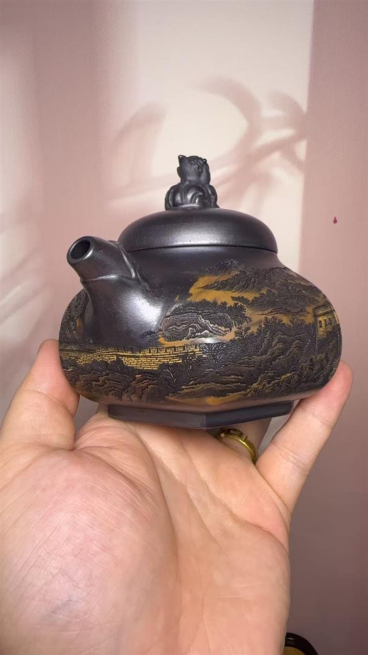 【作品介紹】此款壺形線條流暢,壺把,壺嘴,壺身壹氣呵成栩栩如生,是收藏把玩的好壺,泥料色澤古樸典雅,日久使用,漸露鋒芒,養成變化快,溫潤莊重,用其泡茶,使用的年代久,壺身就溫潤,泡出來的茶湯也就醇郁芳馨。