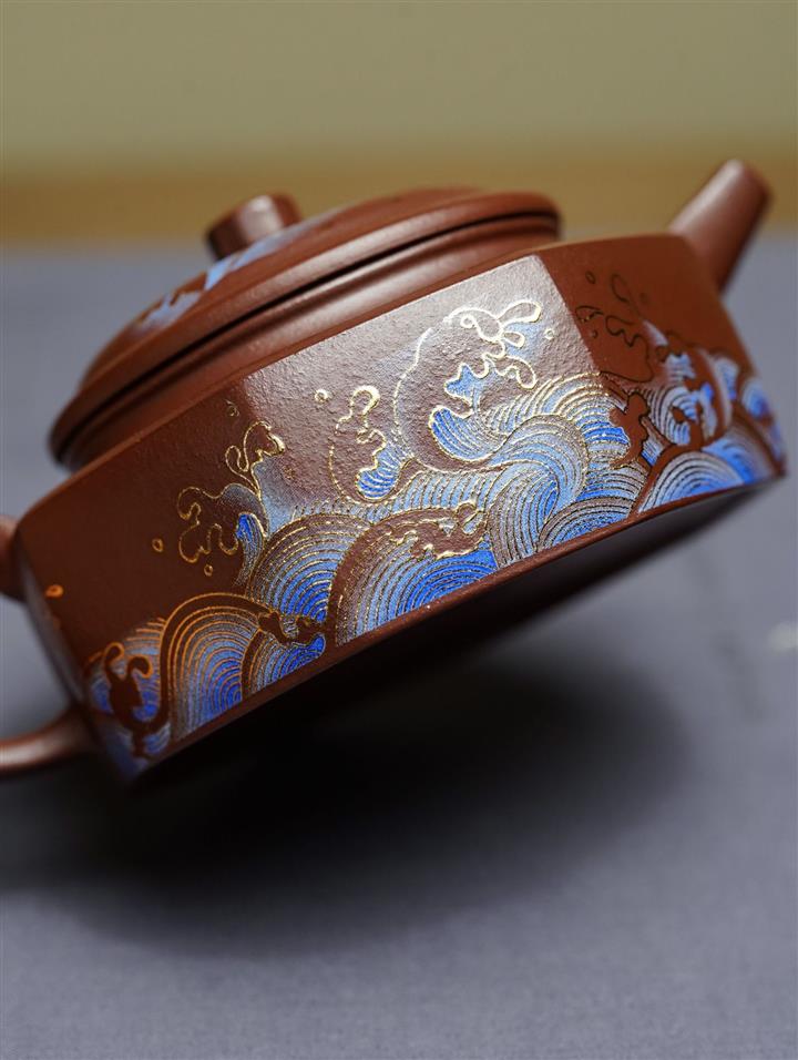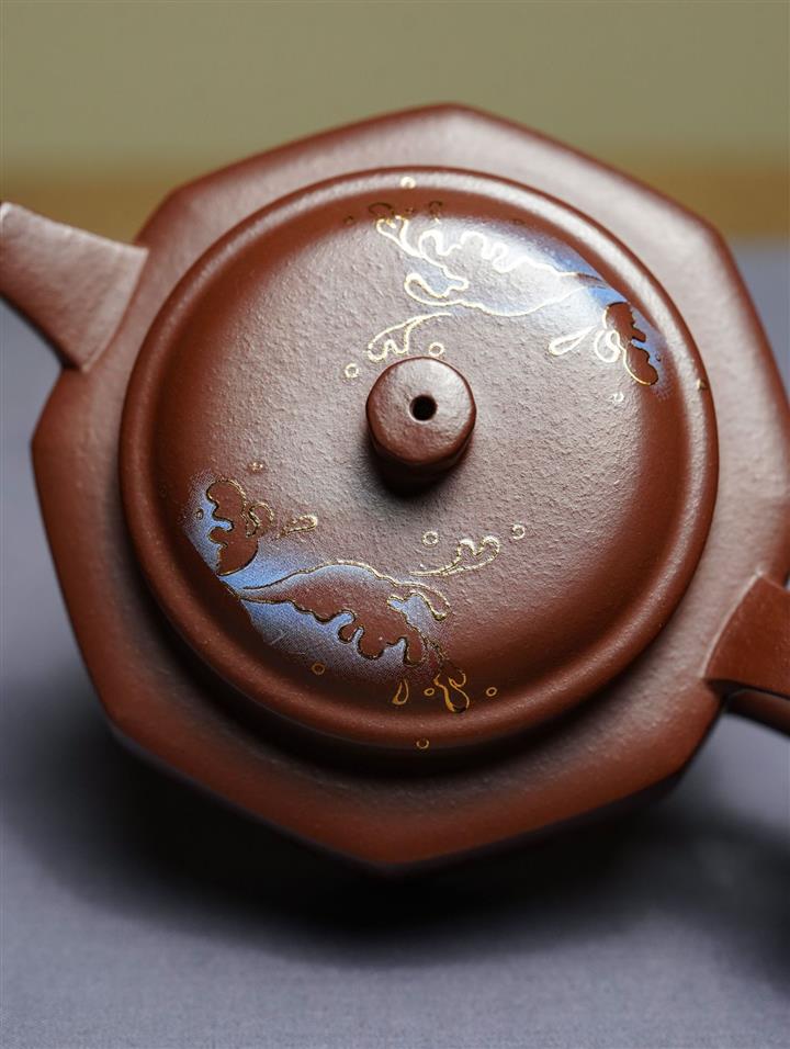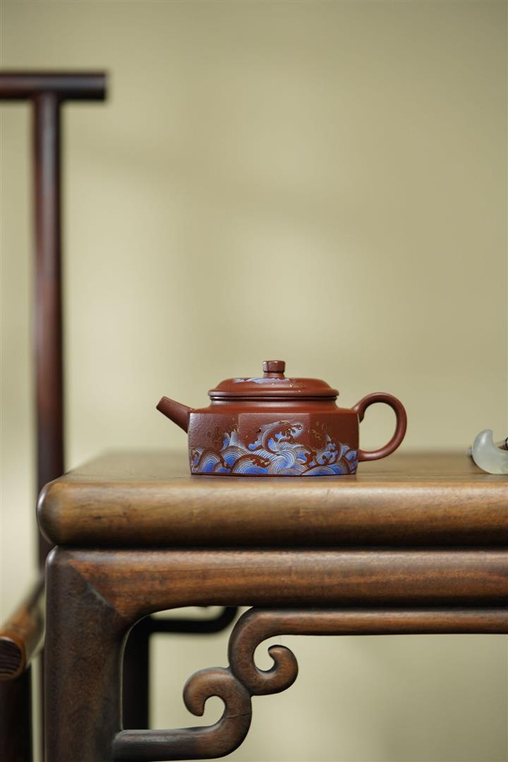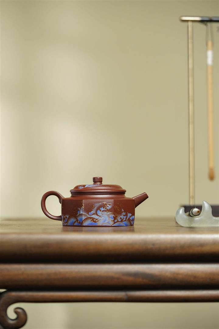 240cc原礦紫泥琺瑯彩八方扁德鐘茶壺POT8867