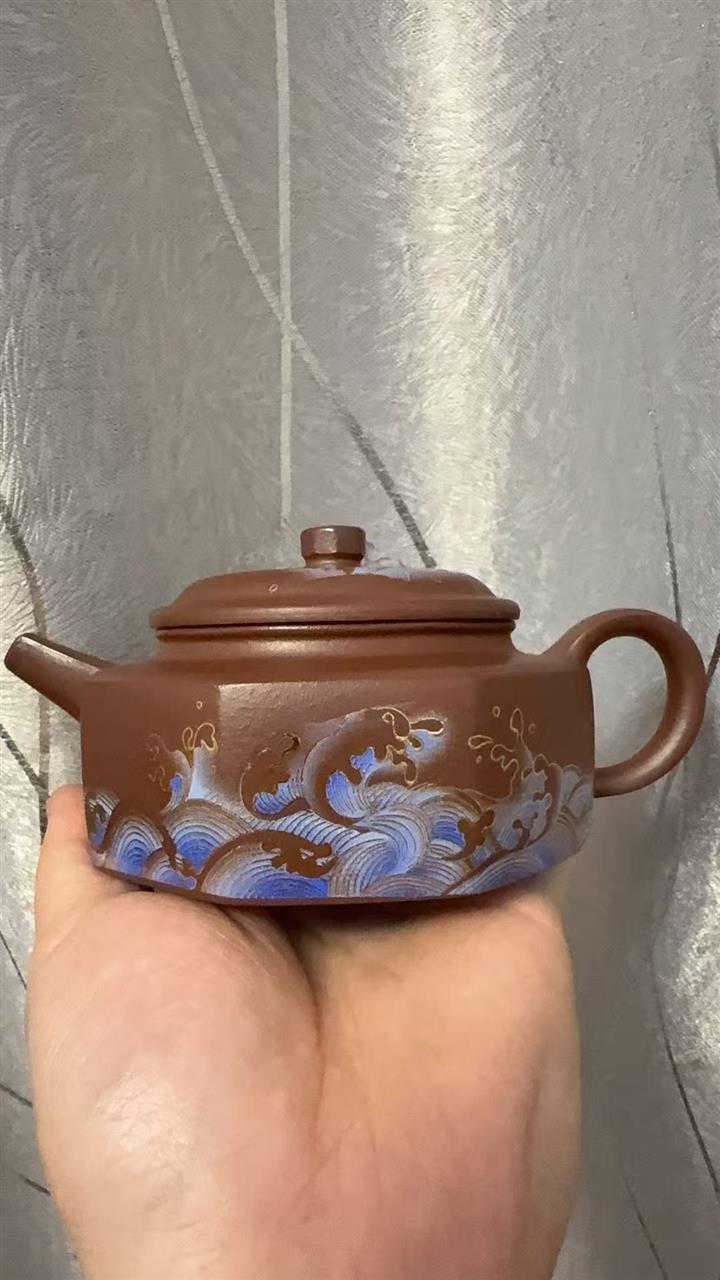 【作品介紹】此款壺形線條流暢,壺把,壺嘴,壺身壹氣呵成栩栩如生,是收藏把玩的好壺,泥料色澤古樸典雅,日久使用,漸露鋒芒,養成變化快,溫潤莊重,用其泡茶,使用的年代久,壺身就溫潤,泡出來的茶湯也就醇郁芳馨。