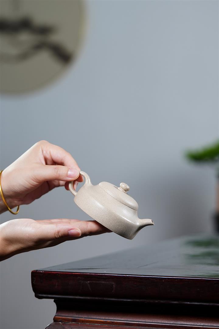 【作品介紹】此款壺形線條流暢,壺把,壺嘴,壺身壹氣呵成栩栩如生,是收藏把玩的好壺,泥料色澤古樸典雅,日久使用,漸露鋒芒,養成變化快,溫潤莊重,用其泡茶,使用的年代久,壺身就溫潤,泡出來的茶湯也就醇郁芳馨。