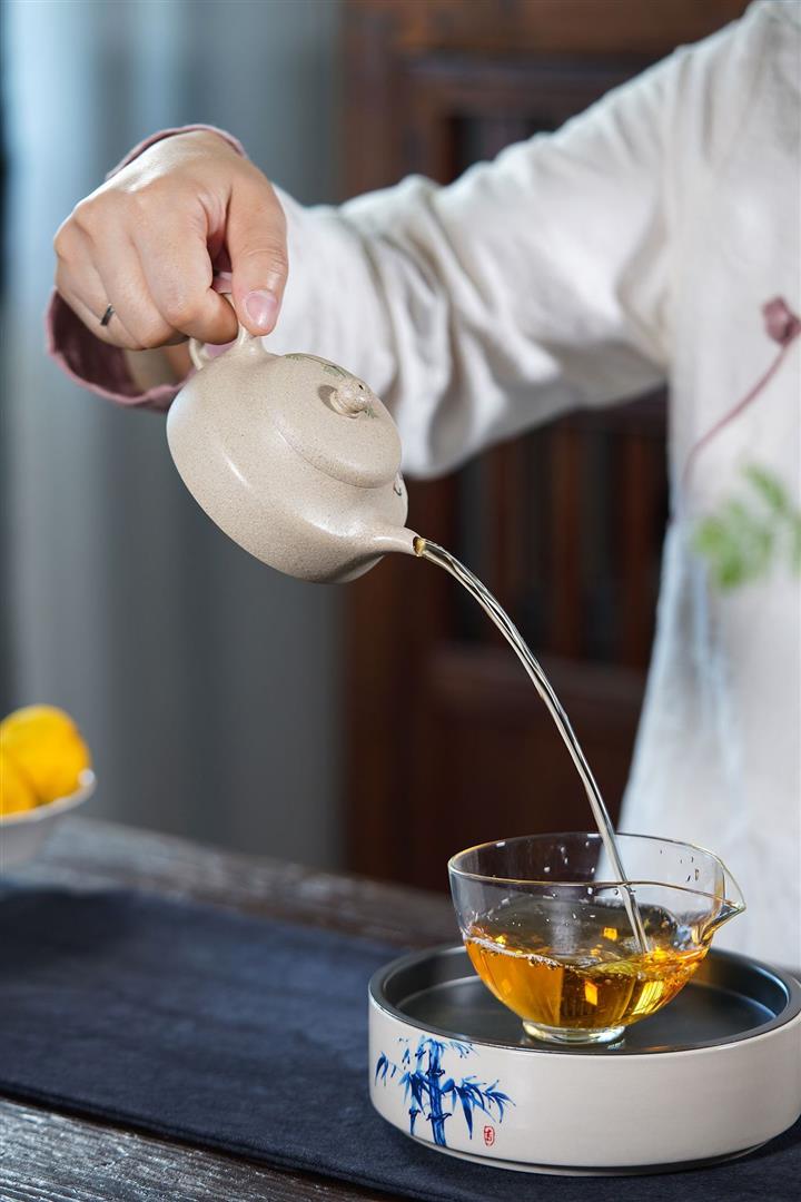 【泥料特點】砂土氣重,似淳實農民,日久使用,漸露鋒芒,養成變化,溫潤莊重。紫砂是壹種雙重氣孔結構的多孔性材質,氣孔微細,密度高。用紫砂壺沏茶,不失原味,且香不渙散,得茶之真香真味。紫砂使用越久,壺身色澤越發光亮照人,氣韻溫雅。紫砂壺長久使用器身會因撫摸擦拭,變得越發溫潤光澤。