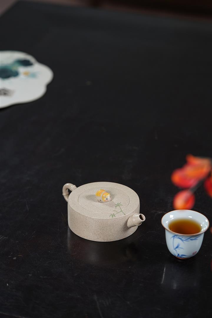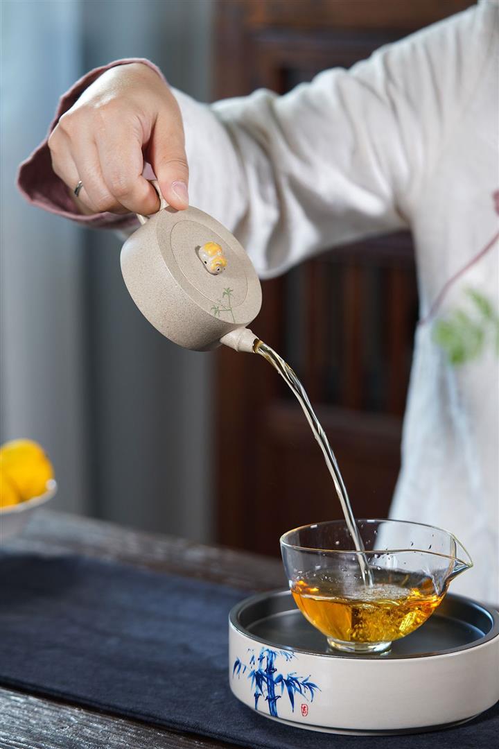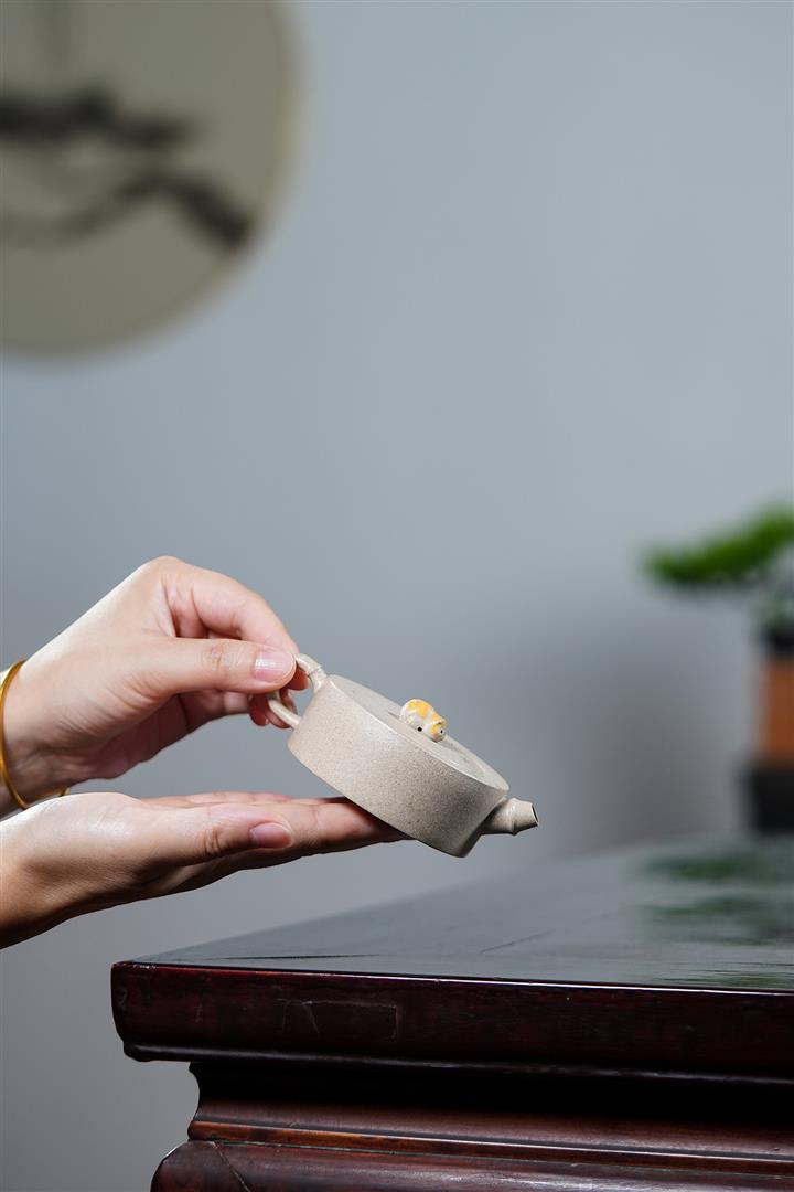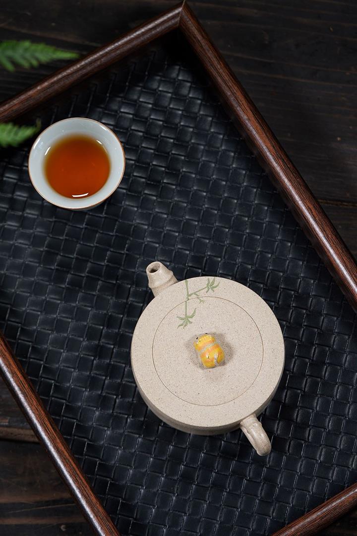 【泥料特點】砂土氣重,似淳實農民,日久使用,漸露鋒芒,養成變化,溫潤莊重。紫砂是壹種雙重氣孔結構的多孔性材質,氣孔微細,密度高。用紫砂壺沏茶,不失原味,且香不渙散,得茶之真香真味。紫砂使用越久,壺身色澤越發光亮照人,氣韻溫雅。紫砂壺長久使用器身會因撫摸擦拭,變得越發溫潤光澤。