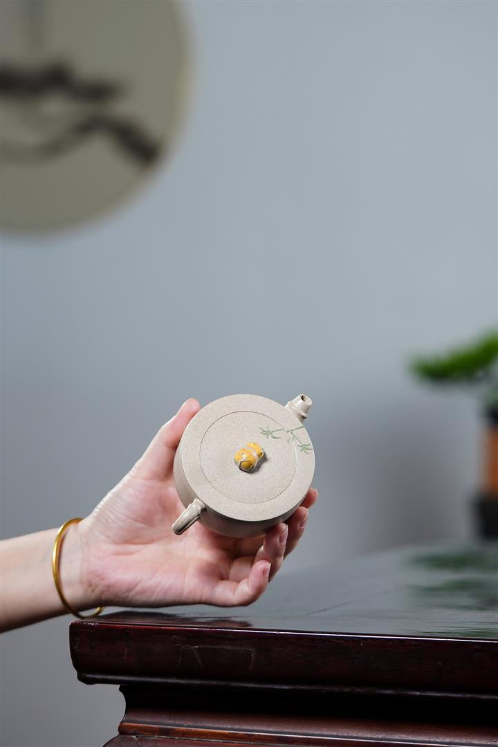 【作品介紹】此款壺形線條流暢,壺把,壺嘴,壺身壹氣呵成栩栩如生,是收藏把玩的好壺,泥料色澤古樸典雅,日久使用,漸露鋒芒,養成變化快,溫潤莊重,用其泡茶,使用的年代久,壺身就溫潤,泡出來的茶湯也就醇郁芳馨。