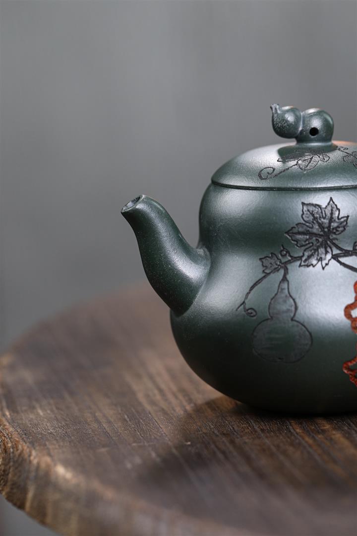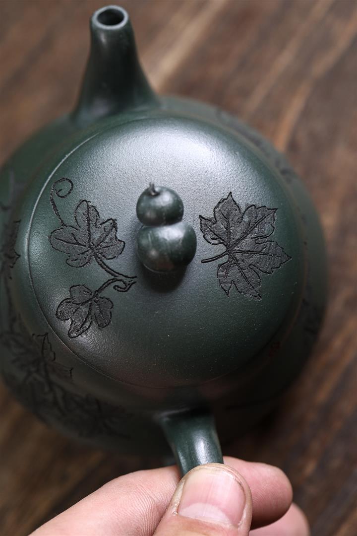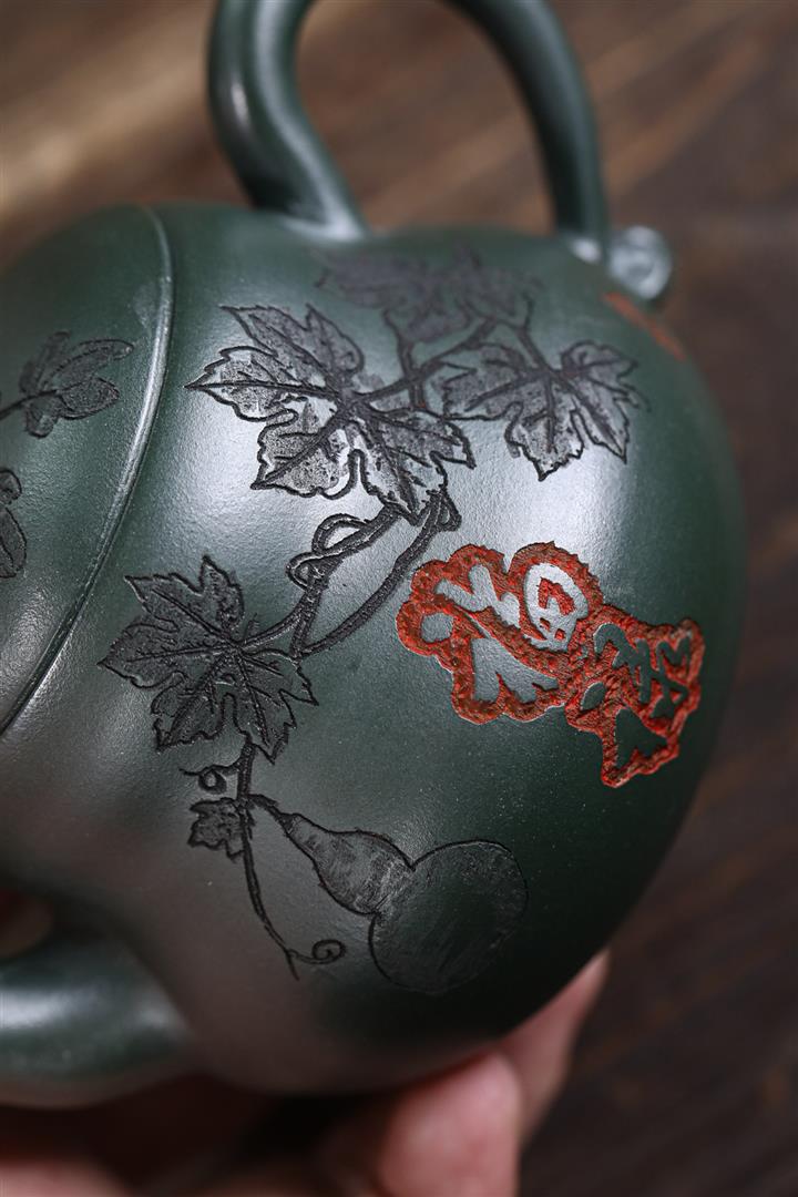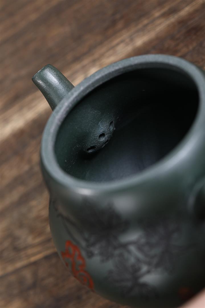 原礦民國綠泥金銀錯旭帽茶壺POT7383