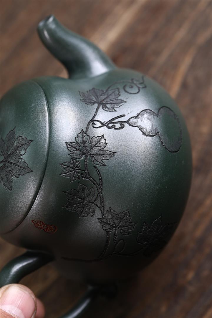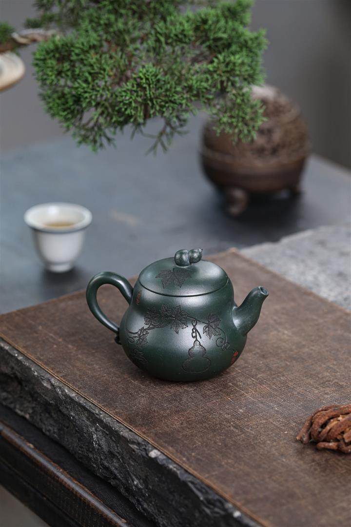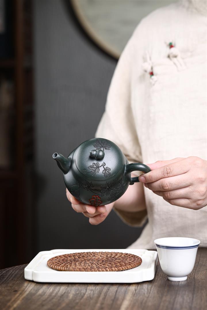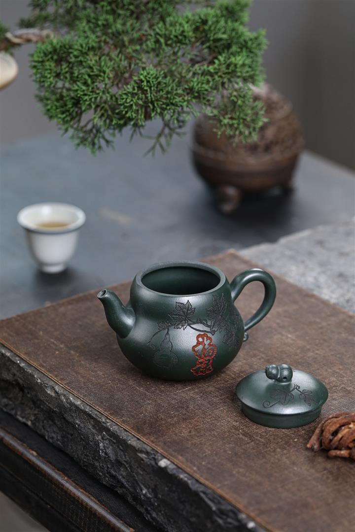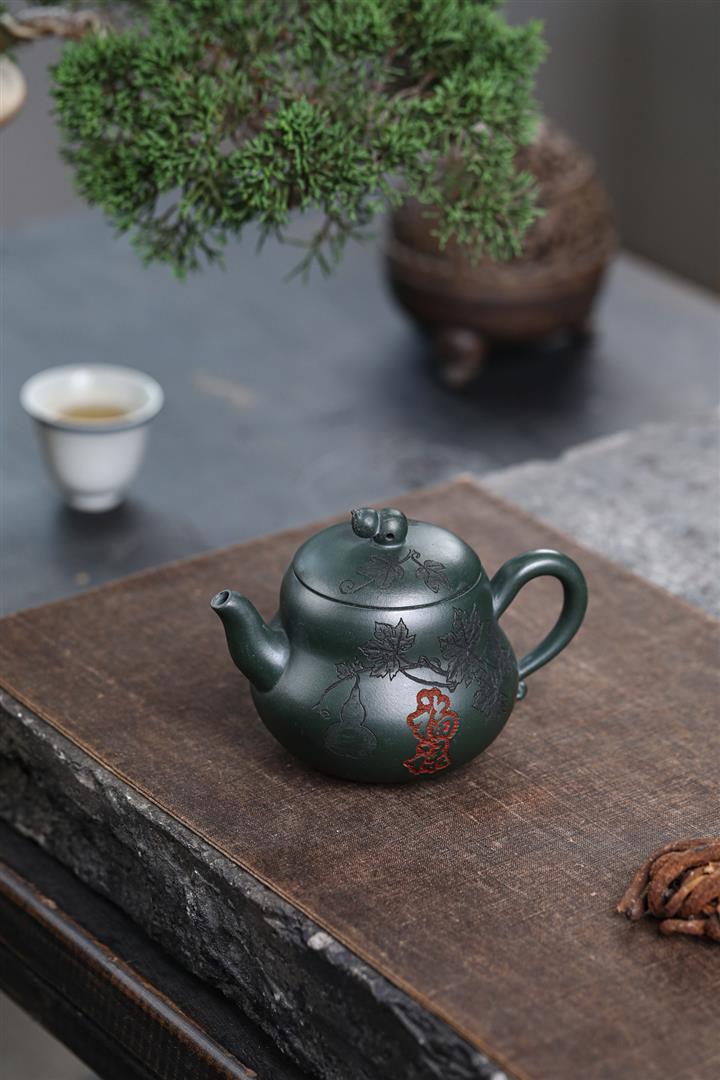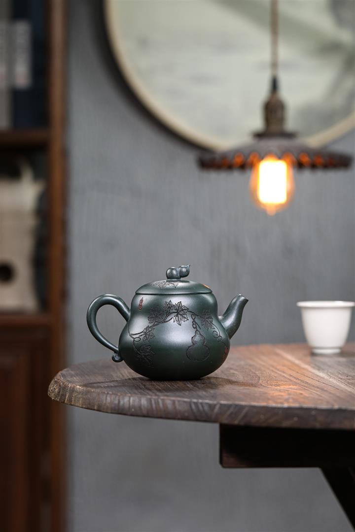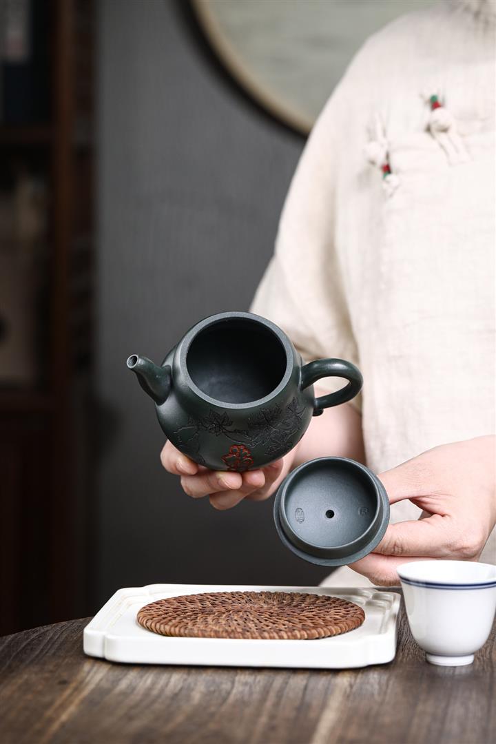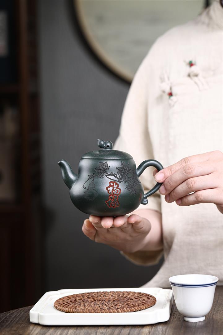 【作品介紹】此款壺形線條流暢,壺把,壺嘴,壺身壹氣呵成栩栩如生,是收藏把玩的好壺,泥料色澤古樸典雅,日久使用,漸露鋒芒,養成變化快,溫潤莊重,用其泡茶,使用的年代久,壺身就溫潤,泡出來的茶湯也就醇郁芳馨。