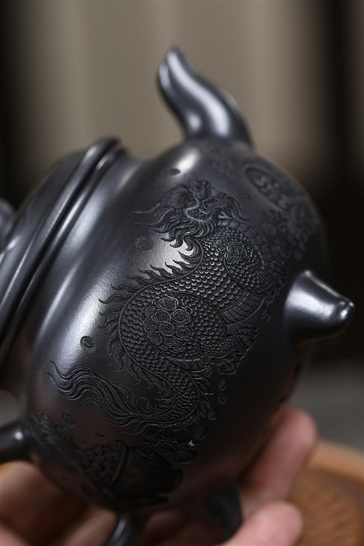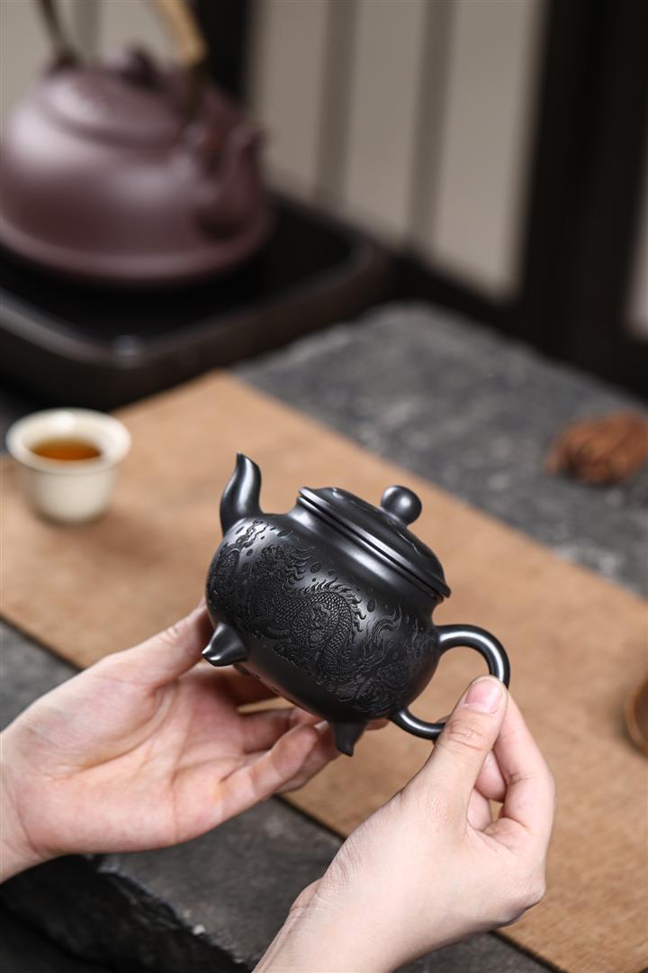 【作品介紹】此款壺形線條流暢,壺把,壺嘴,壺身壹氣呵成栩栩如生,是收藏把玩的好壺,泥料色澤古樸典雅,日久使用,漸露鋒芒,養成變化快,溫潤莊重,用其泡茶,使用的年代久,壺身就溫潤,泡出來的茶湯也就醇郁芳馨。