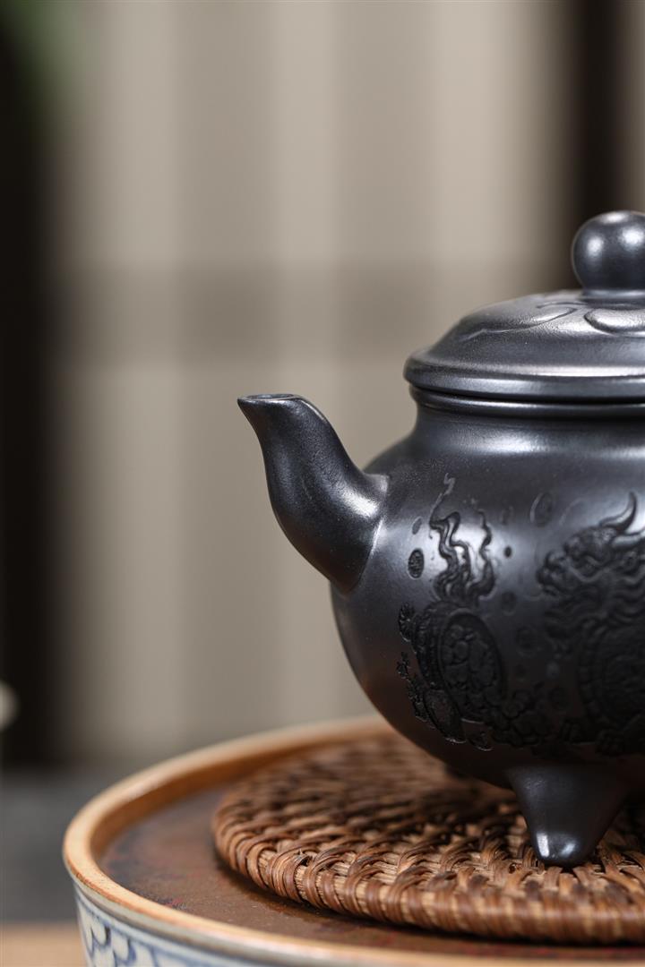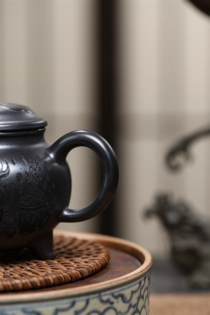 軍綠泥三足爐鼎茶壺POT4390