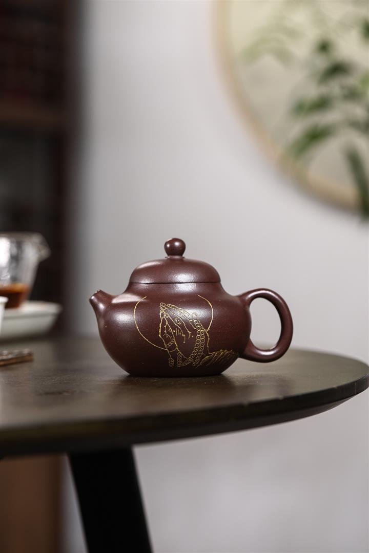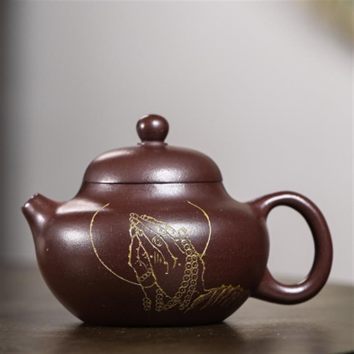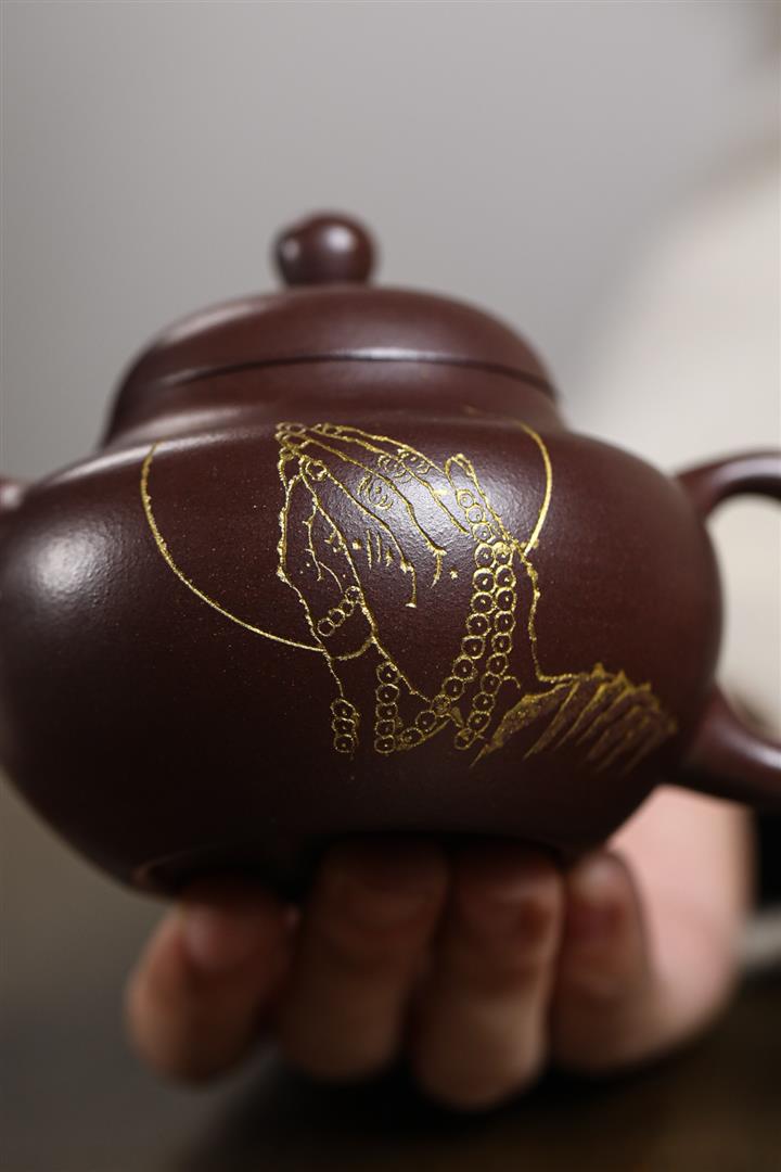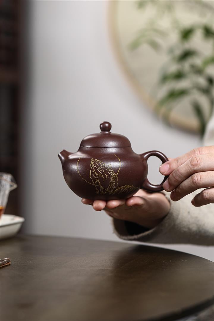 450cc原礦紫泥滿刻大德鐘茶壺POT8290
