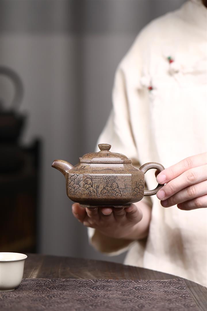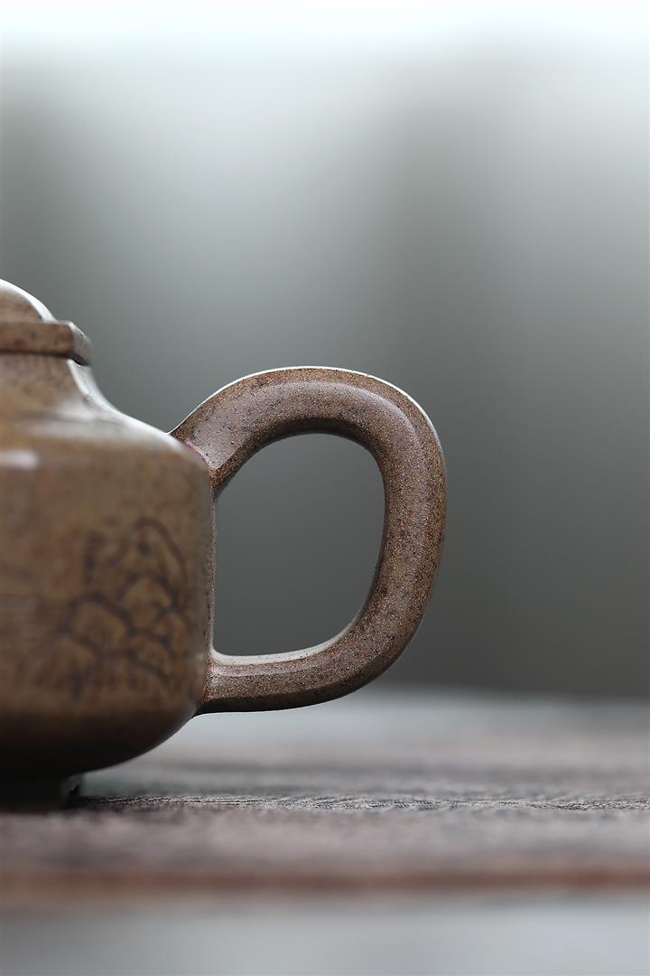 【作品介紹】此款壺形線條流暢,壺把,壺嘴,壺身壹氣呵成栩栩如生,是收藏把玩的好壺,泥料色澤古樸典雅,日久使用,漸露鋒芒,養成變化快,溫潤莊重,用其泡茶,使用的年代久,壺身就溫潤,泡出來的茶湯也就醇郁芳馨。
