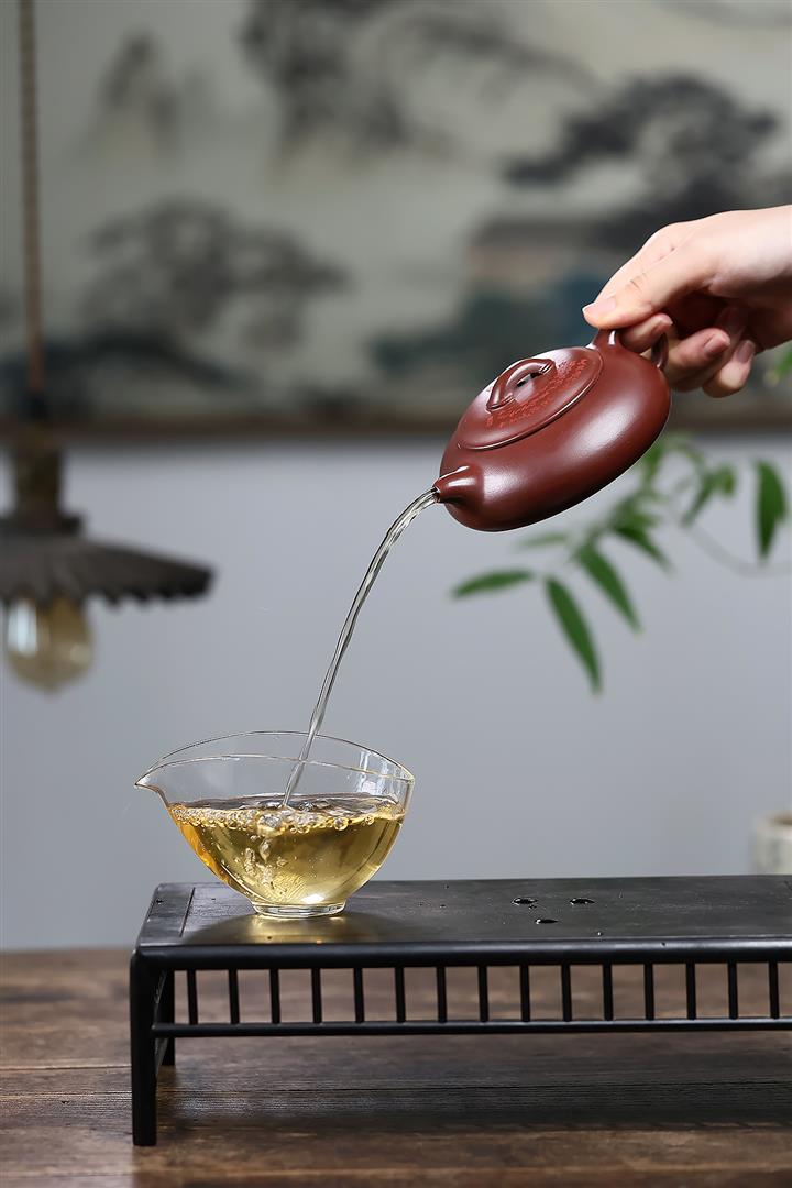 【泥料特點】砂土氣重,似淳實農民,日久使用,漸露鋒芒,養成變化,溫潤莊重。紫砂是壹種雙重氣孔結構的多孔性材質,氣孔微細,密度高。用紫砂壺沏茶,不失原味,且香不渙散,得茶之真香真味。紫砂使用越久,壺身色澤越發光亮照人,氣韻溫雅。紫砂壺長久使用器身會因撫摸擦拭,變得越發溫潤光澤。