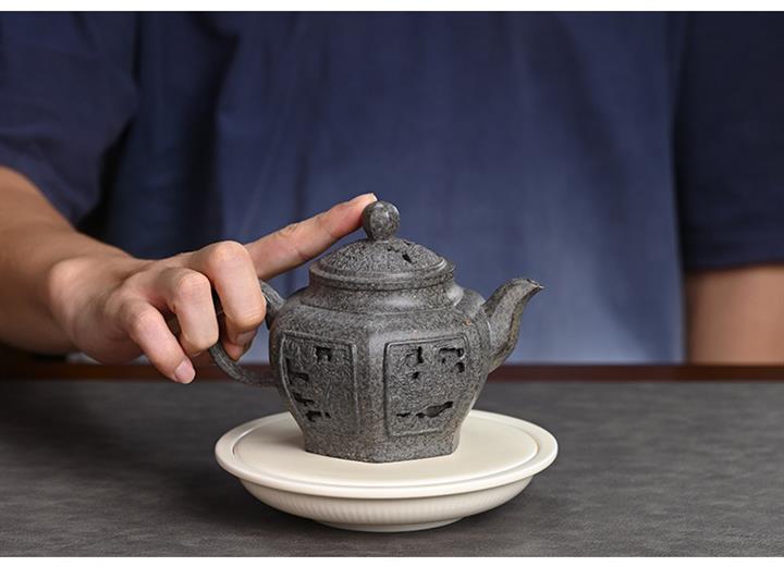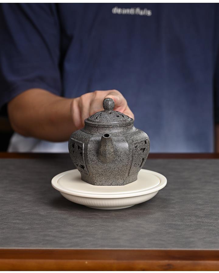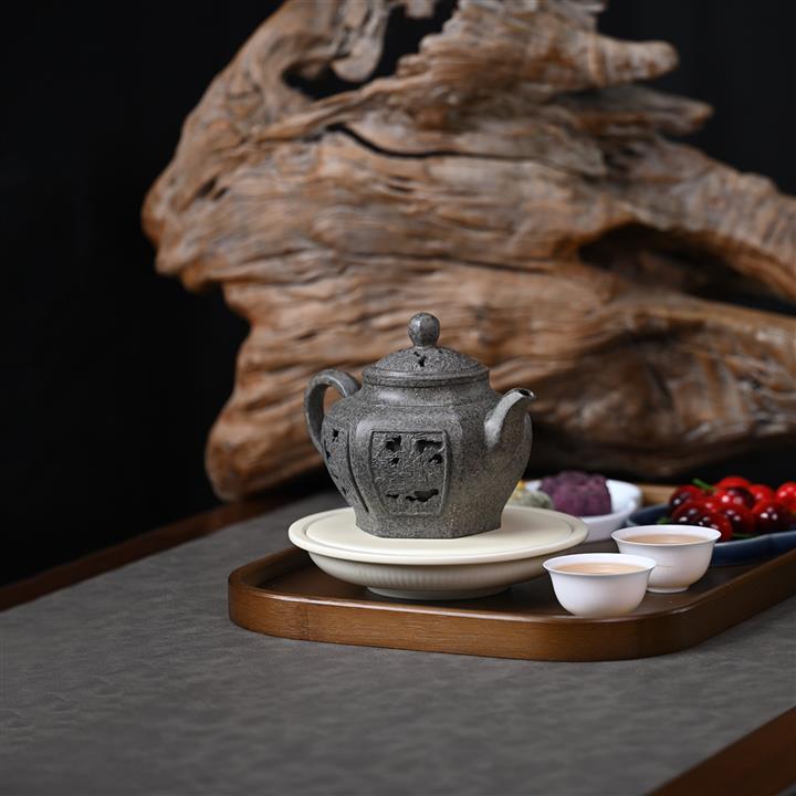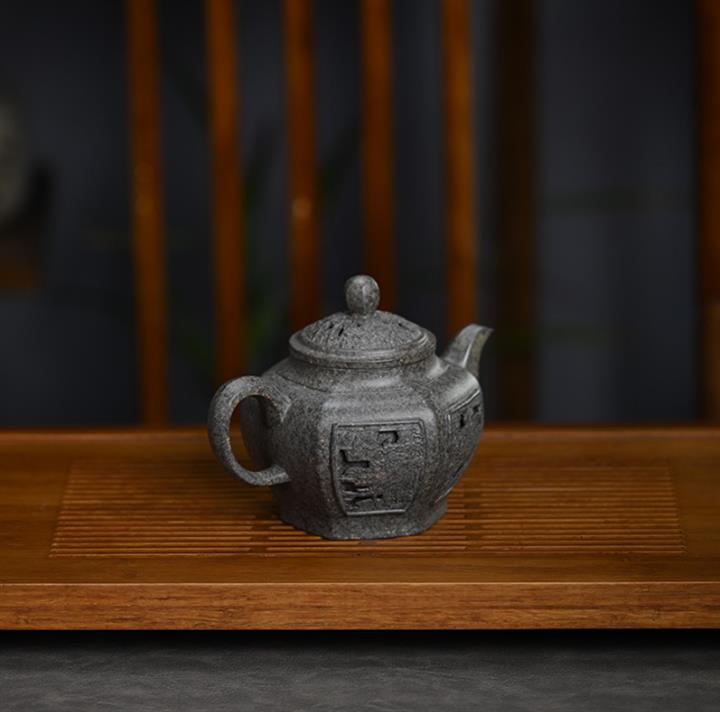 450cc原礦開花泥鏤空六方宮燈茶壺POT8932