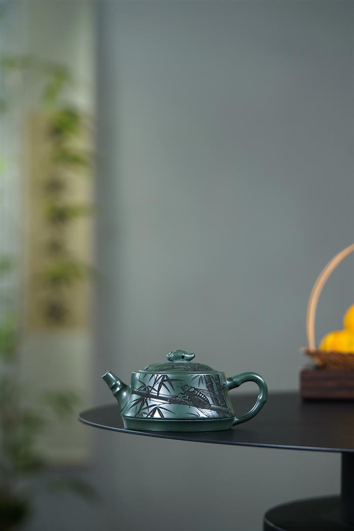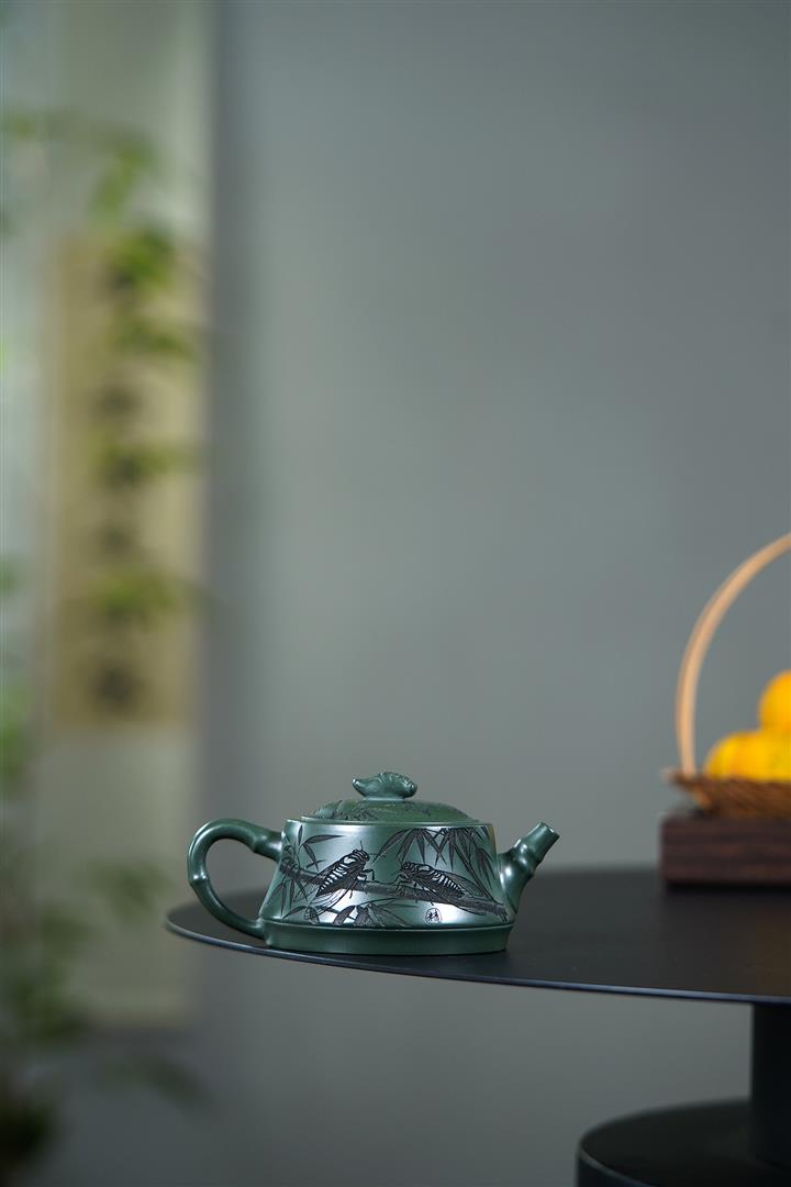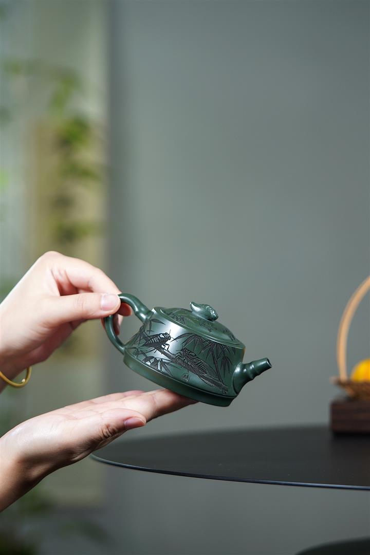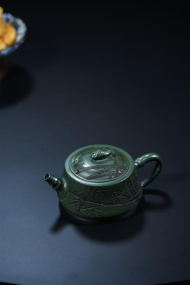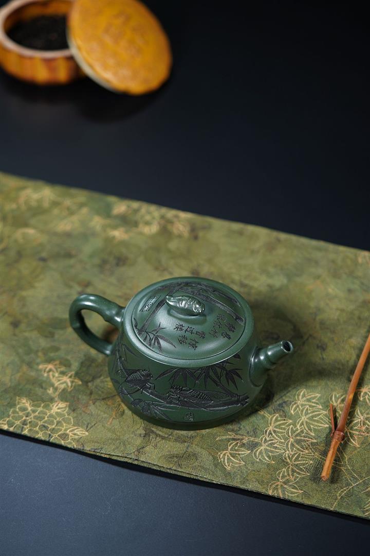 原礦翡翠綠泥刻繪漢韻茶壺POT7866