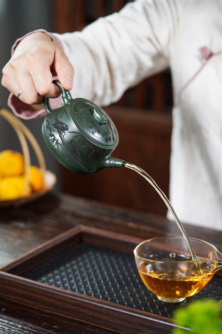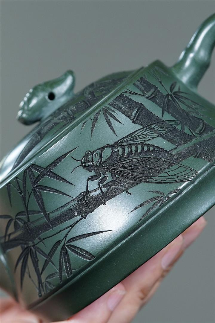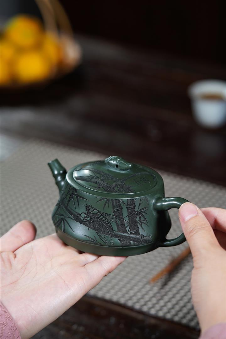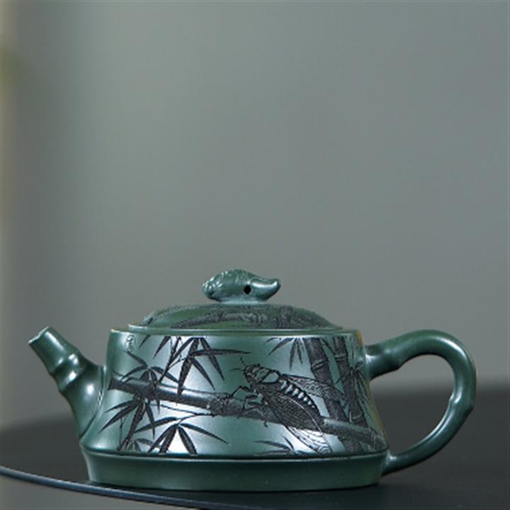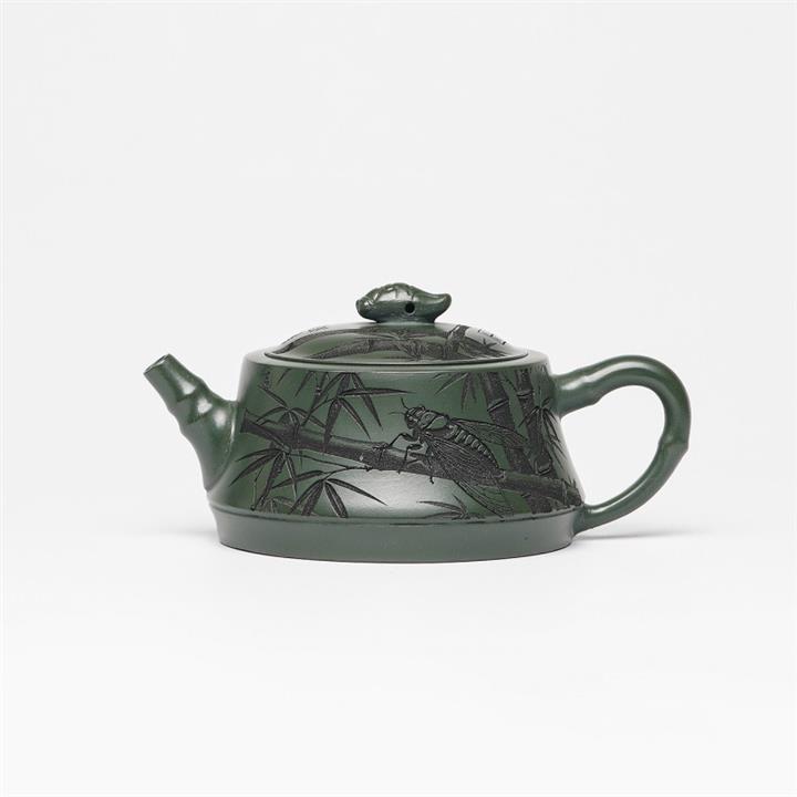 原礦翡翠綠泥刻繪漢韻茶壺POT7866