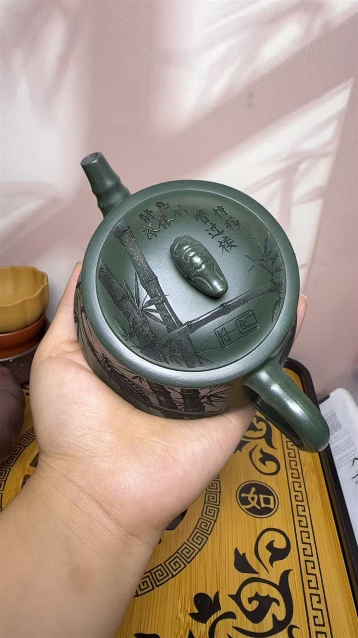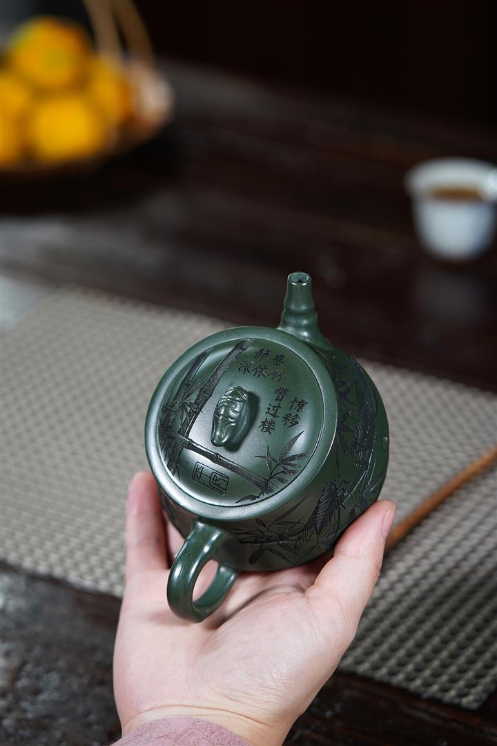 原礦綠泥刻繪掇球泡茶壺POT7865