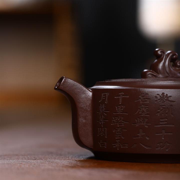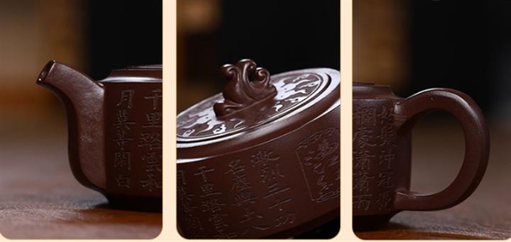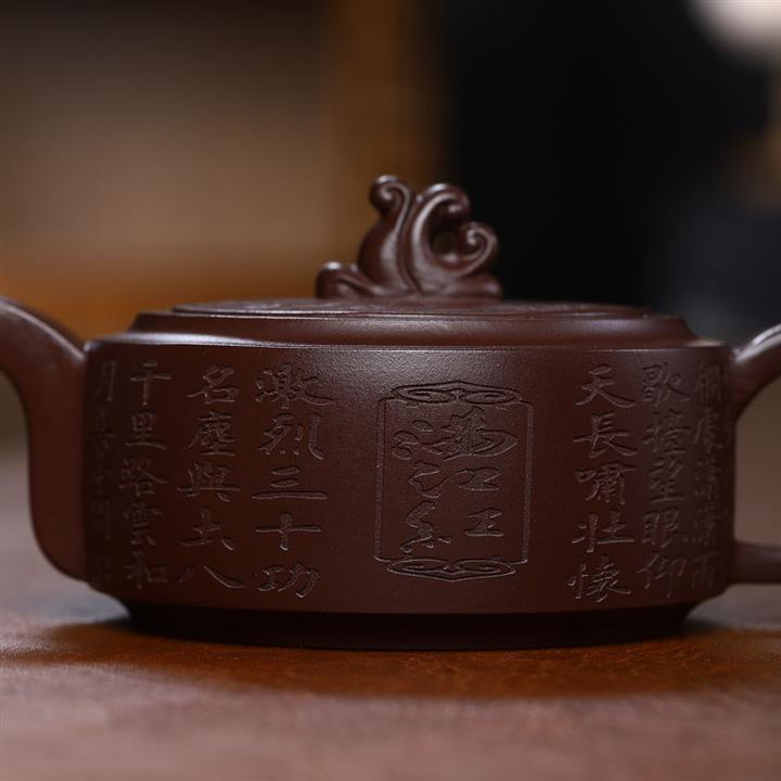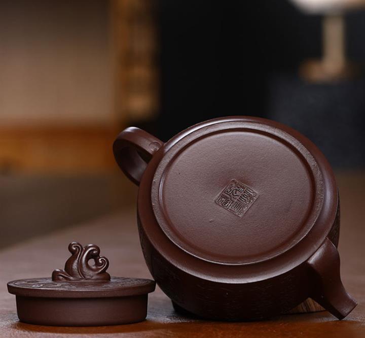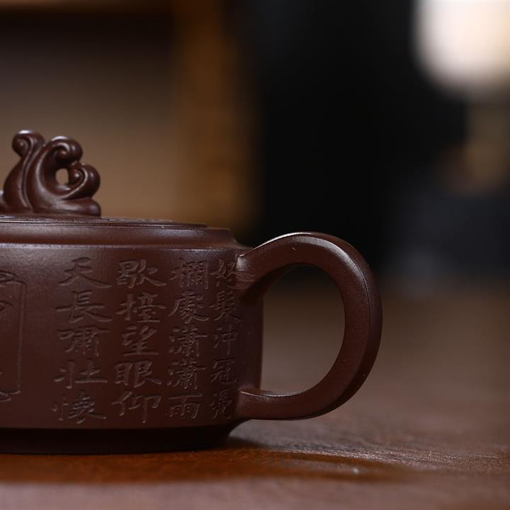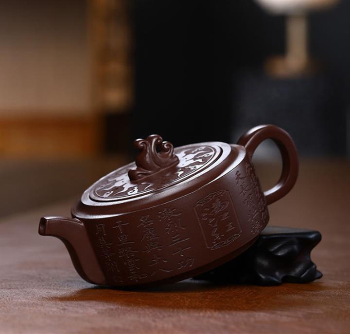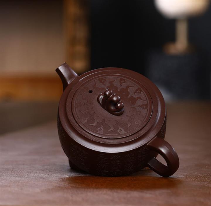200cc原礦紫泥刻繪周盤茶壺POT8958