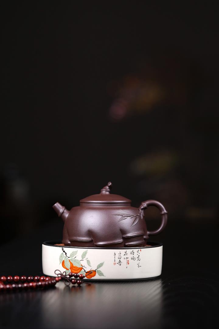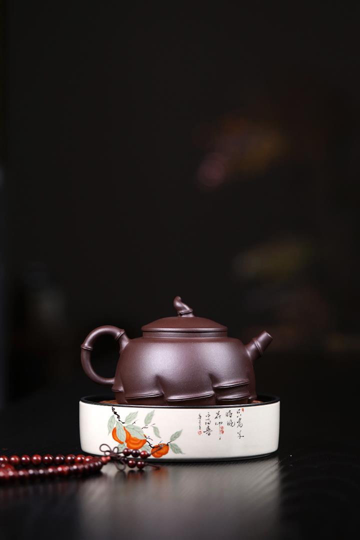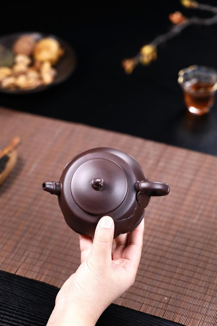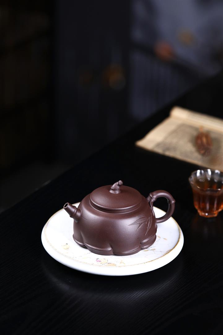 原礦降坡泥手工竹影圓瓦茶壺POT6568