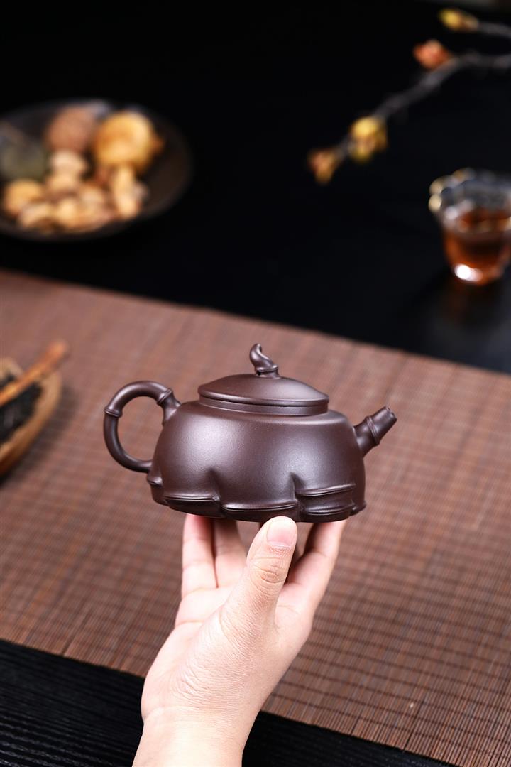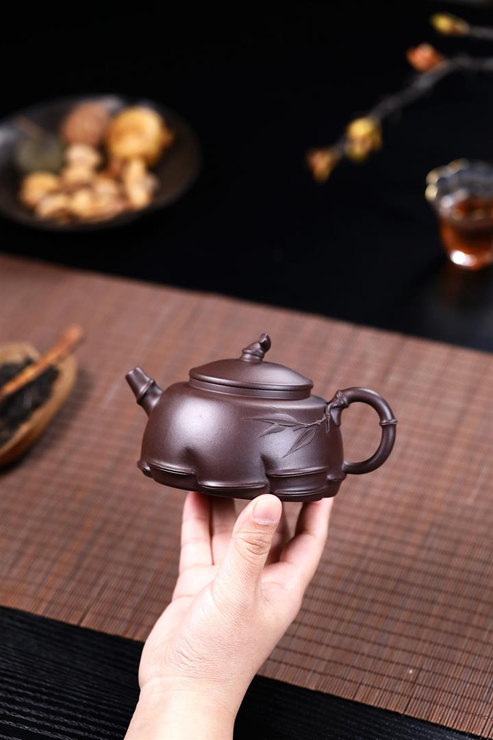 原礦赤金朱泥太湖石手工竹影漢瓦茶壺POT6566