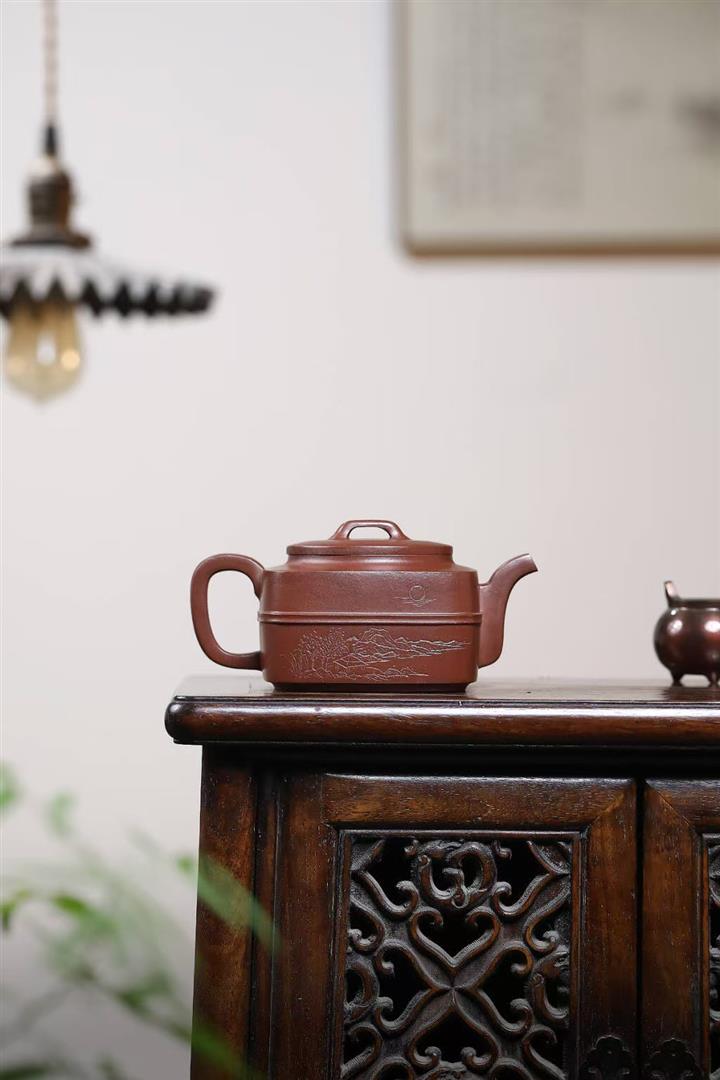 【作品介紹】此款壺形線條流暢,壺把,壺嘴,壺身壹氣呵成栩栩如生,是收藏把玩的好壺,泥料色澤古樸典雅,日久使用,漸露鋒芒,養成變化快,溫潤莊重,用其泡茶,使用的年代久,壺身就溫潤,泡出來的茶湯也就醇郁芳馨。