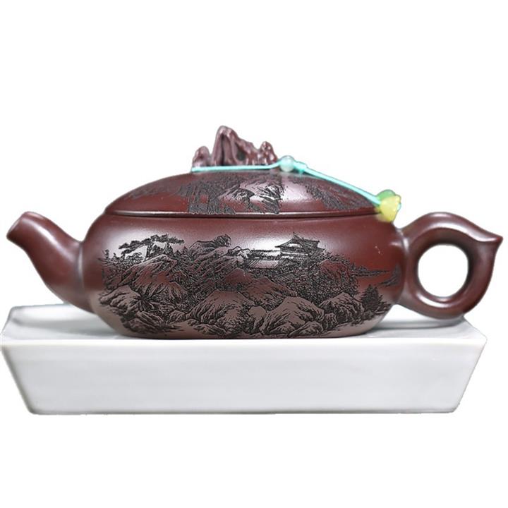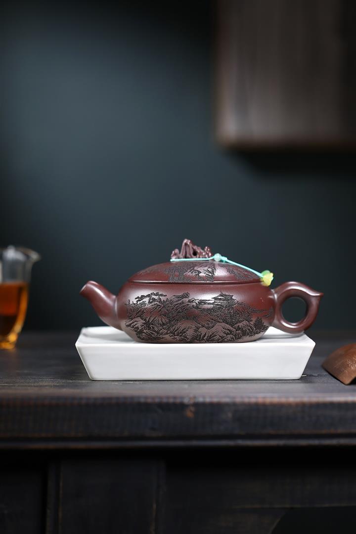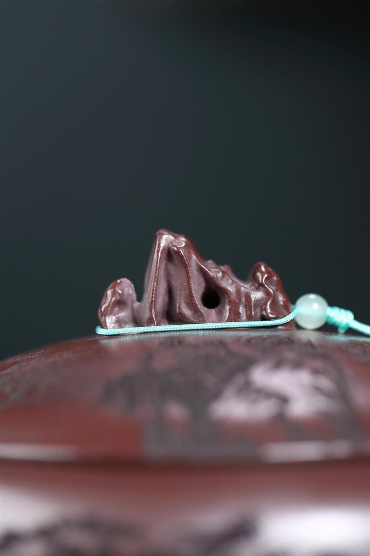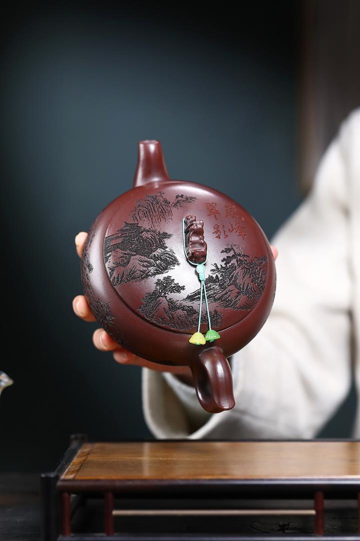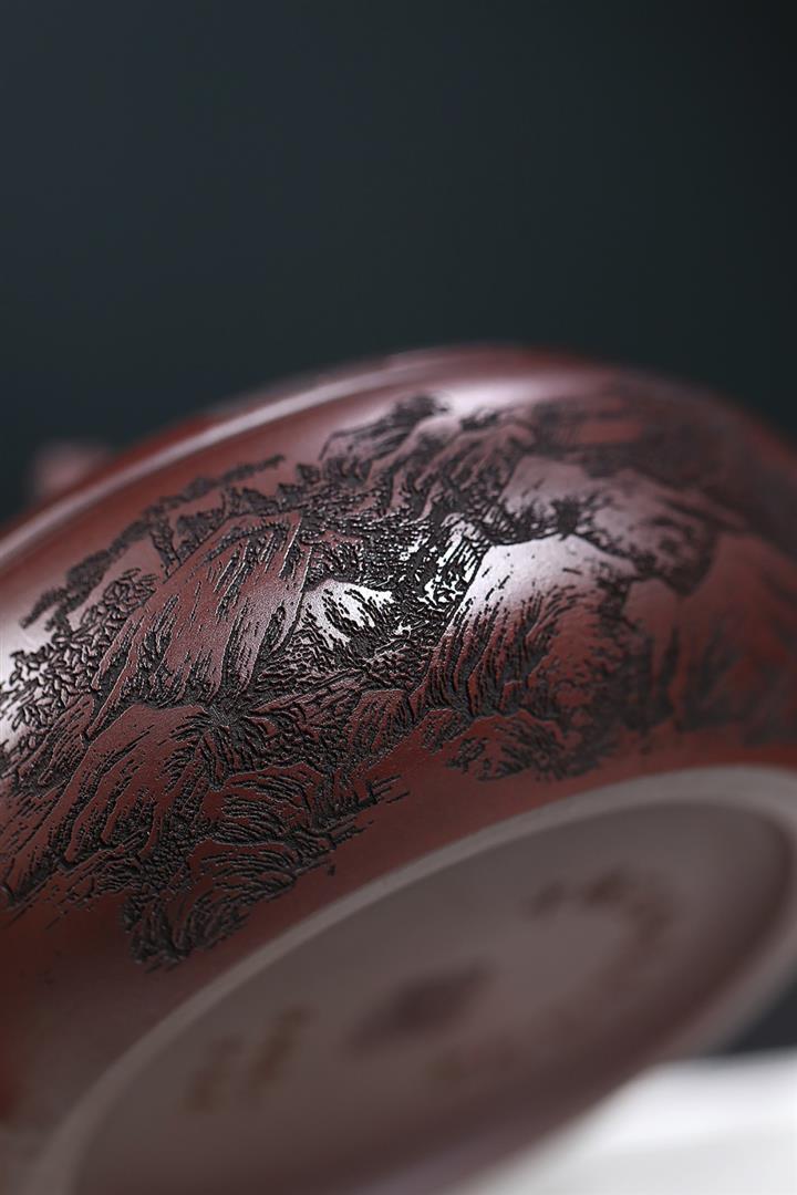 480cc原礦古銅烏泥滿刻見山漢瓦茶壺POT9051