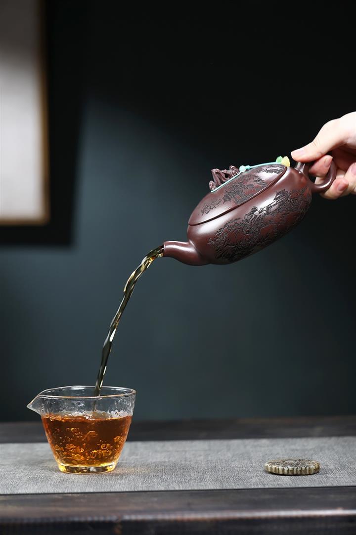 【泥料特點】砂土氣重,似淳實農民,日久使用,漸露鋒芒,養成變化,溫潤莊重。紫砂是壹種雙重氣孔結構的多孔性材質,氣孔微細,密度高。用紫砂壺沏茶,不失原味,且香不渙散,得茶之真香真味。紫砂使用越久,壺身色澤越發光亮照人,氣韻溫雅。紫砂壺長久使用器身會因撫摸擦拭,變得越發溫潤光澤。