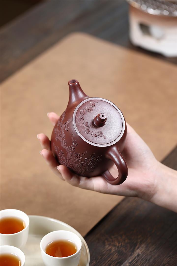 【作品介紹】此款壺形線條流暢,壺把,壺嘴,壺身壹氣呵成栩栩如生,是收藏把玩的好壺,泥料色澤古樸典雅,日久使用,漸露鋒芒,養成變化快,溫潤莊重,用其泡茶,使用的年代久,壺身就溫潤,泡出來的茶湯也就醇郁芳馨。