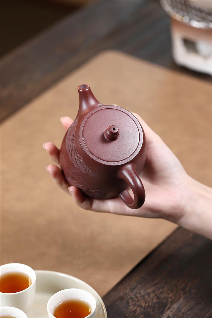 200cc原礦古紅泥遊龍戲鳳漢瓦茶壺POT8137