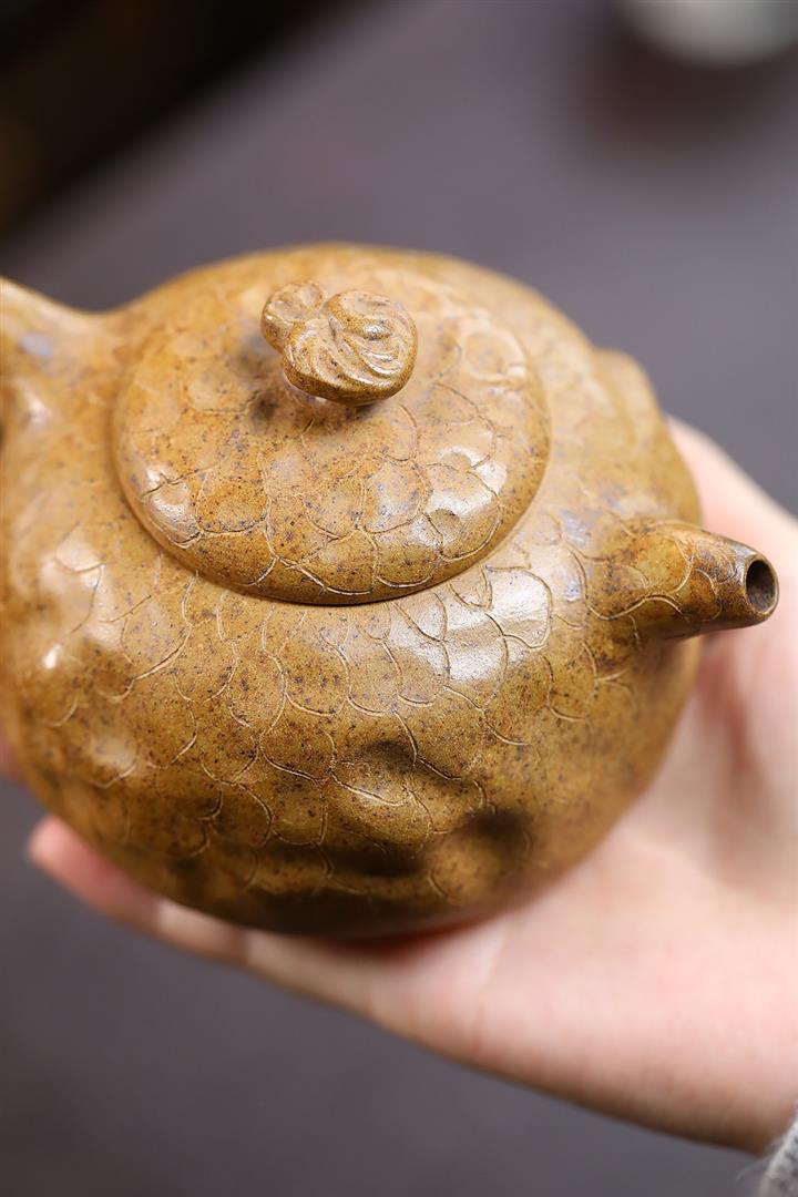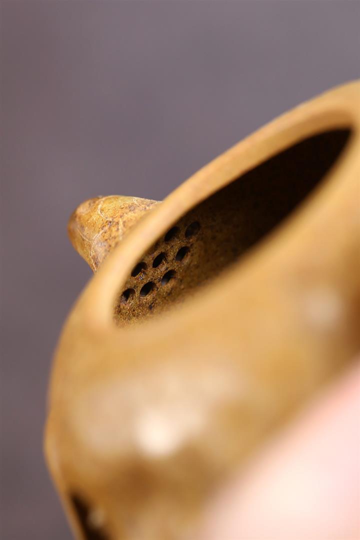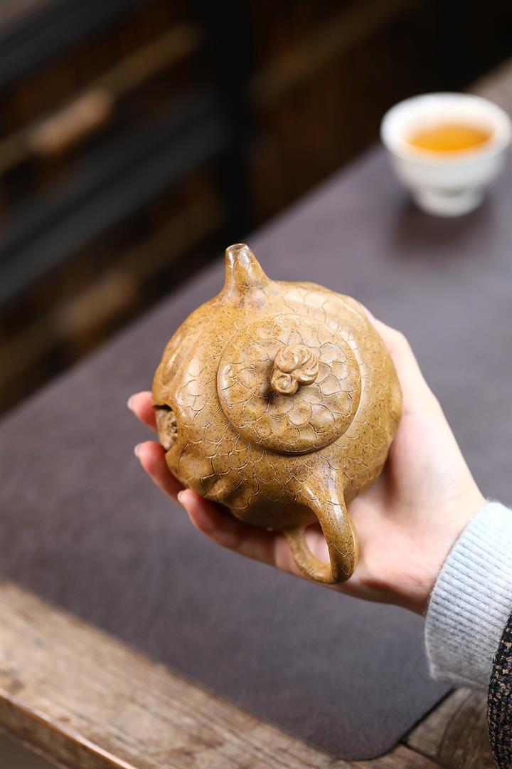 【作品介紹】此款壺形線條流暢,壺把,壺嘴,壺身壹氣呵成栩栩如生,是收藏把玩的好壺,泥料色澤古樸典雅,日久使用,漸露鋒芒,養成變化快,溫潤莊重,用其泡茶,使用的年代久,壺身就溫潤,泡出來的茶湯也就醇郁芳馨。