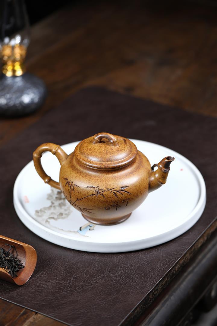 330cc龍骨金砂高溫柴燒竹葉報春茶壺POT9092