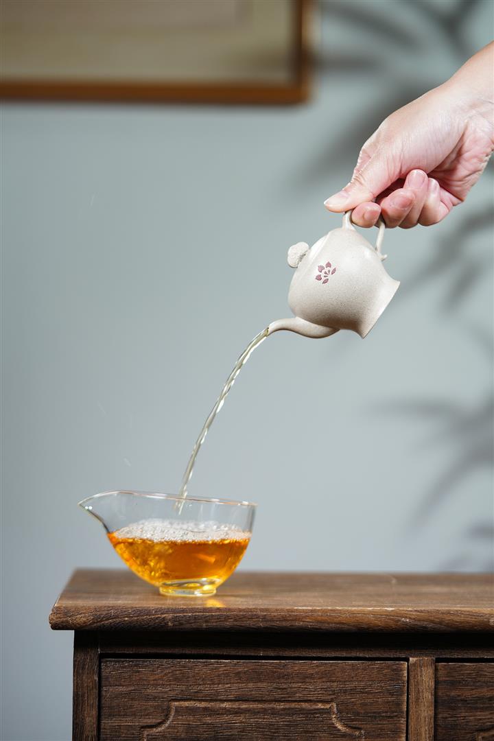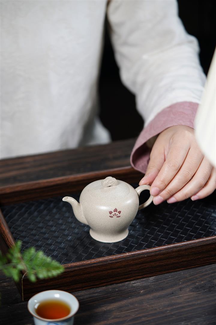 【泥料特點】砂土氣重,似淳實農民,日久使用,漸露鋒芒,養成變化,溫潤莊重。紫砂是壹種雙重氣孔結構的多孔性材質,氣孔微細,密度高。用紫砂壺沏茶,不失原味,且香不渙散,得茶之真香真味。紫砂使用越久,壺身色澤越發光亮照人,氣韻溫雅。紫砂壺長久使用器身會因撫摸擦拭,變得越發溫潤光澤。