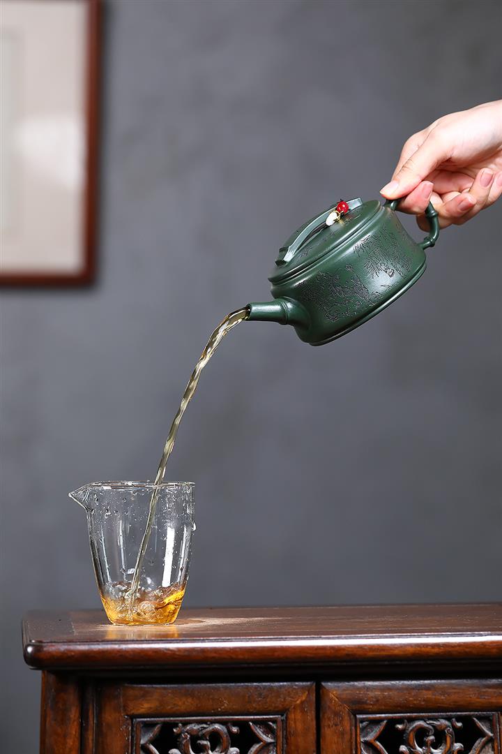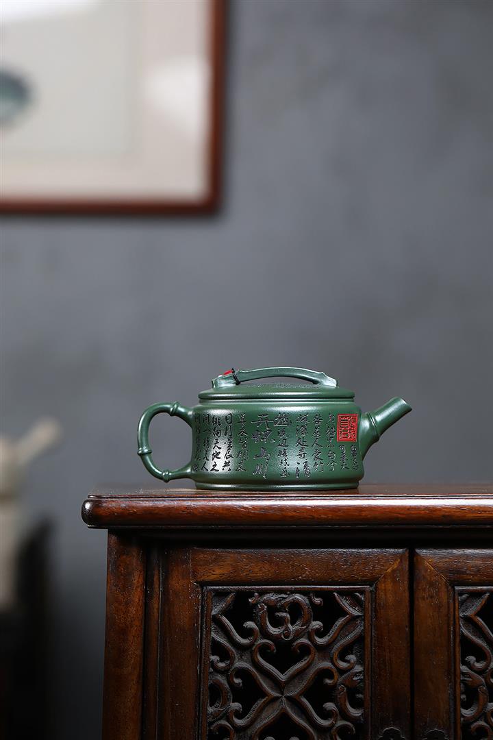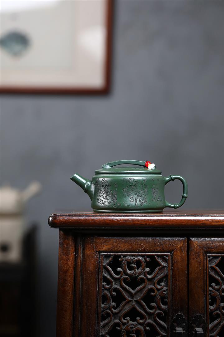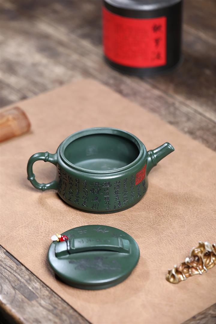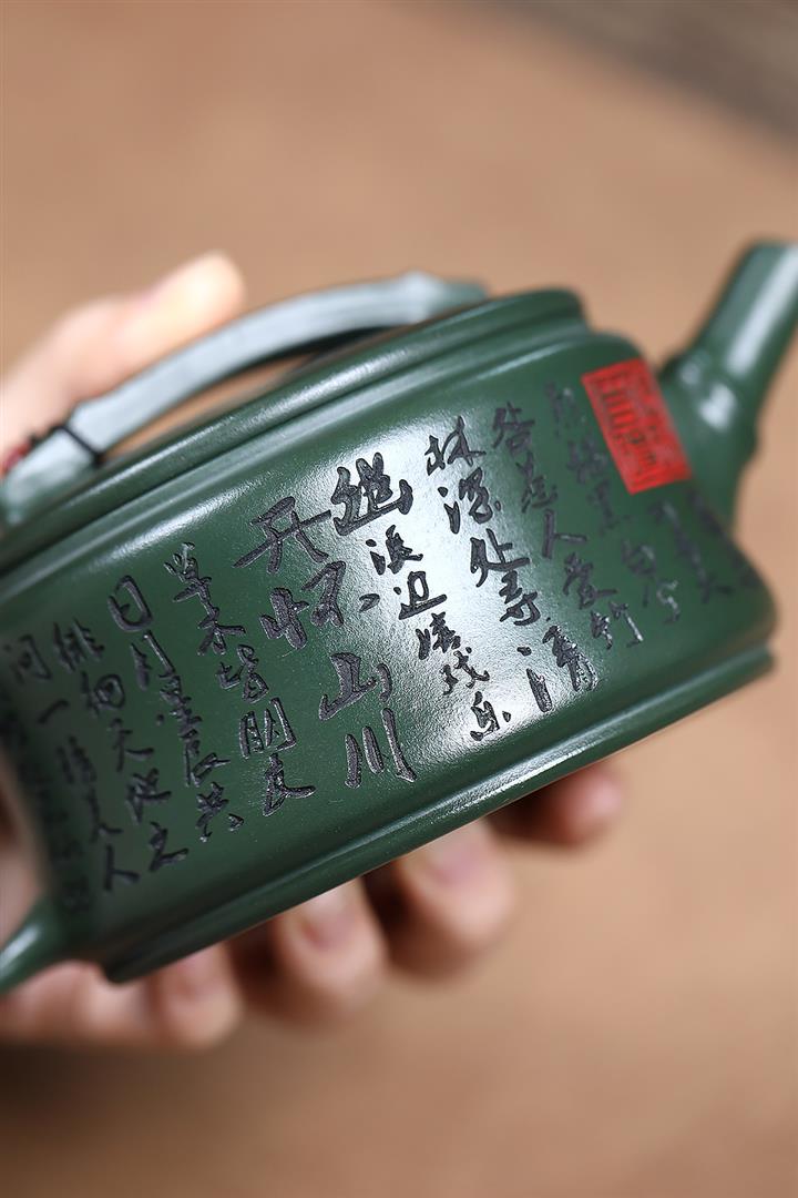 寅·墨綠泥水扁紫砂壺POT6264