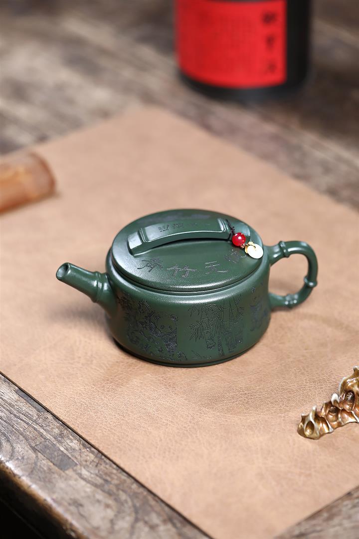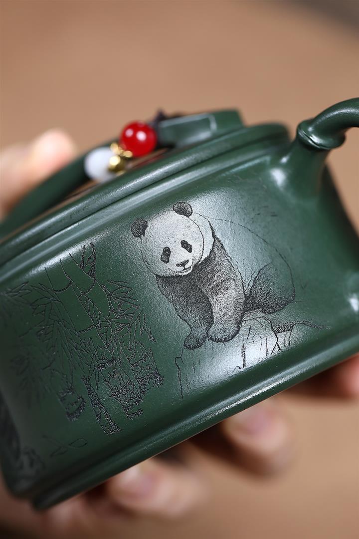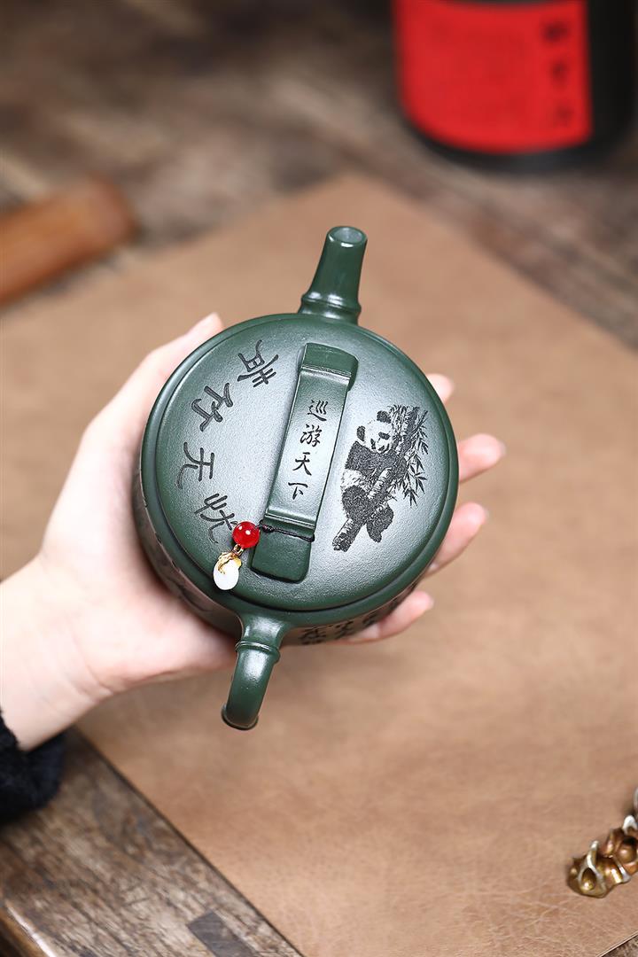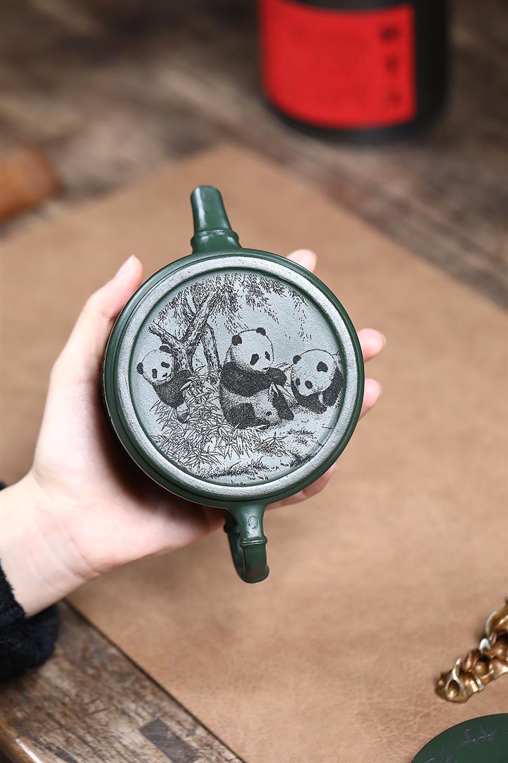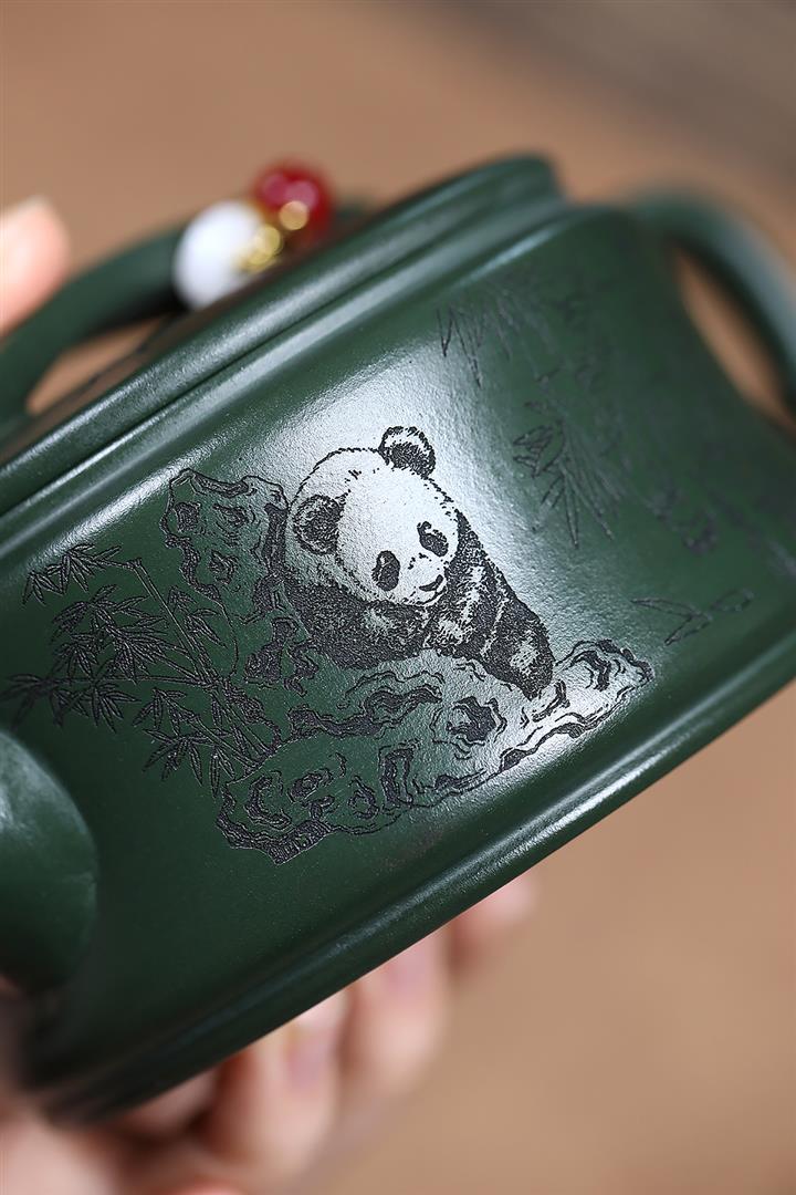 330cc原礦墨綠泥熊貓漢瓦茶壺POT9168