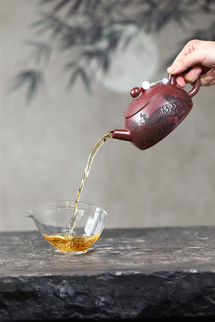 【泥料特點】砂土氣重,似淳實農民,日久使用,漸露鋒芒,養成變化,溫潤莊重。紫砂是壹種雙重氣孔結構的多孔性材質,氣孔微細,密度高。用紫砂壺沏茶,不失原味,且香不渙散,得茶之真香真味。紫砂使用越久,壺身色澤越發光亮照人,氣韻溫雅。紫砂壺長久使用器身會因撫摸擦拭,變得越發溫潤光澤。