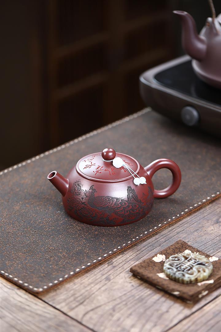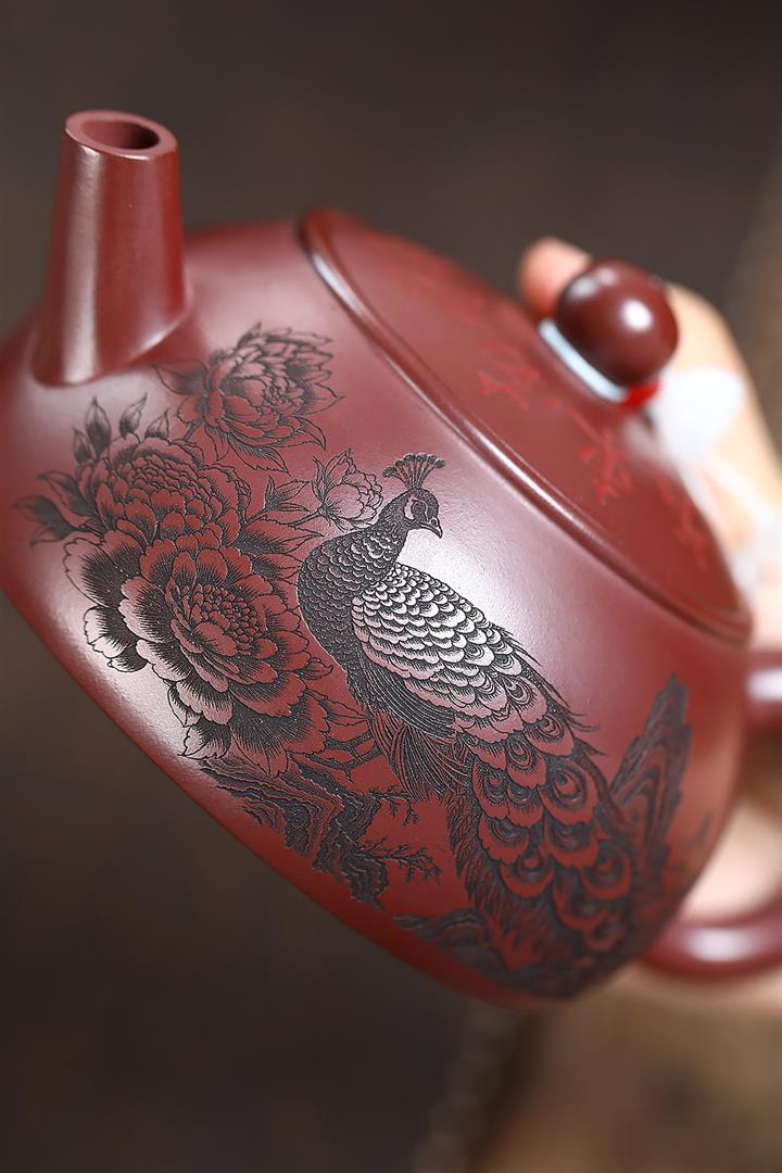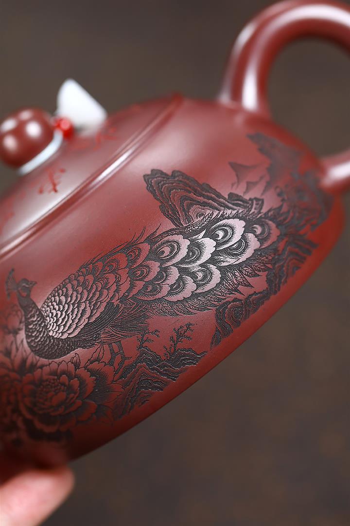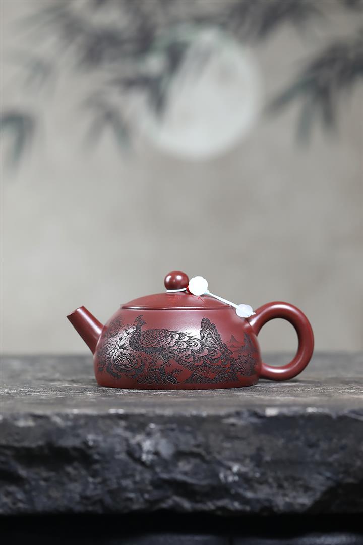 280cc原礦大紅袍孔雀半月茶壺POT9198