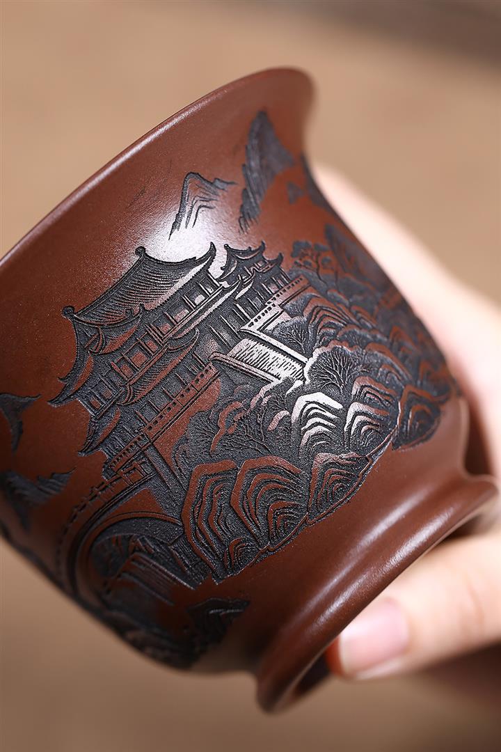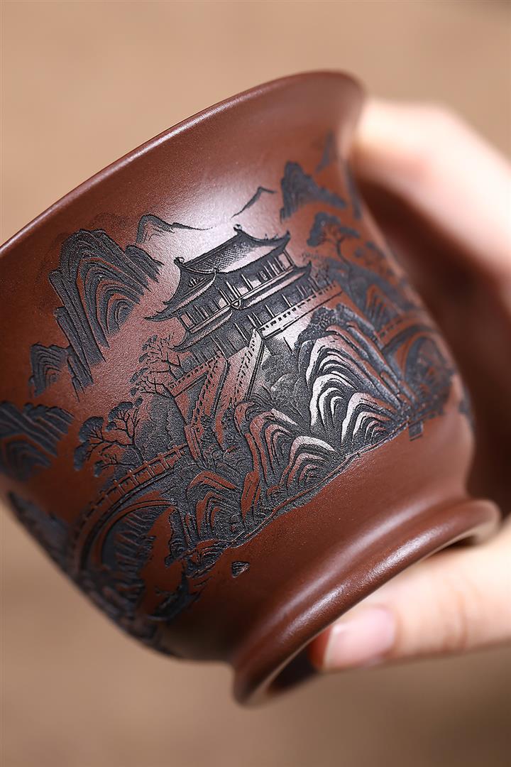 原礦紫泥山水江南公道杯