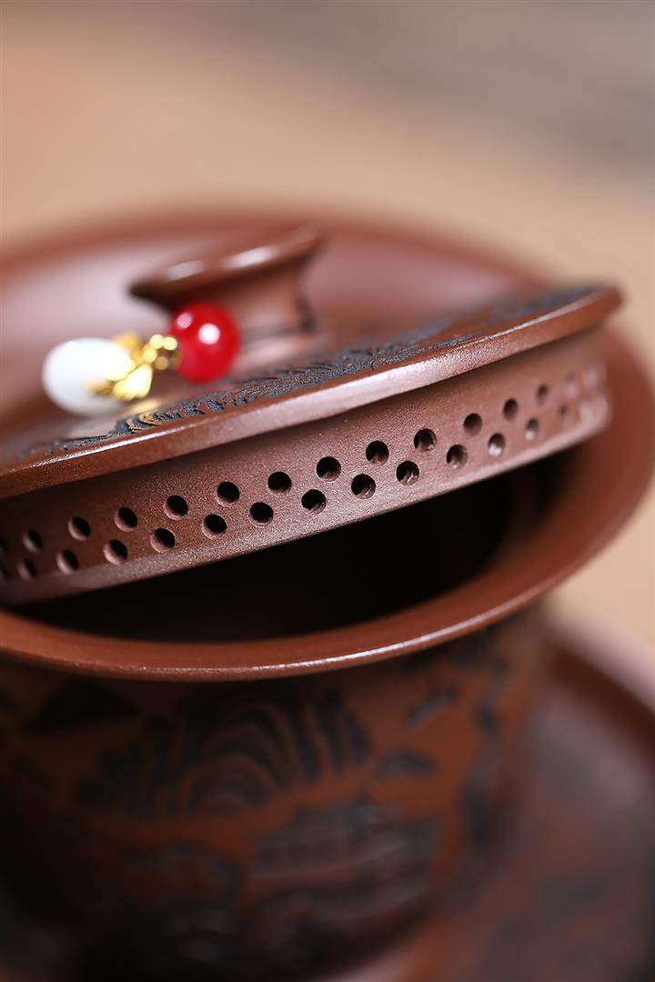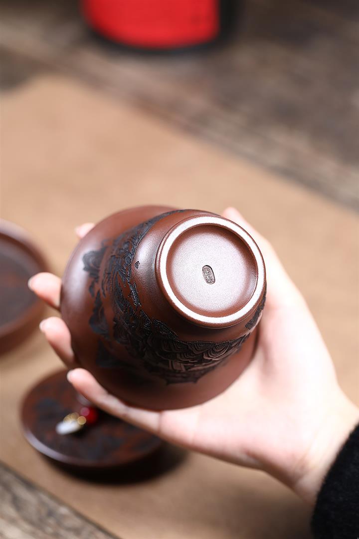 【泥料特點】砂土氣重,似淳實農民,日久使用,漸露鋒芒,養成變化,溫潤莊重。紫砂是壹種雙重氣孔結構的多孔性材質,氣孔微細,密度高。用紫砂壺沏茶,不失原味,且香不渙散,得茶之真香真味。紫砂使用越久,壺身色澤越發光亮照人,氣韻溫雅。紫砂壺長久使用器身會因撫摸擦拭,變得越發溫潤光澤。