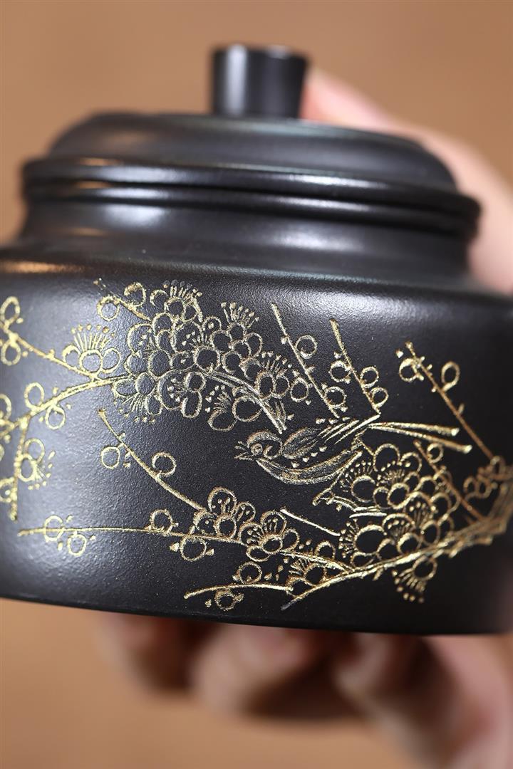 原礦紫朱泥手工梅花寒江茶壺POT6898
