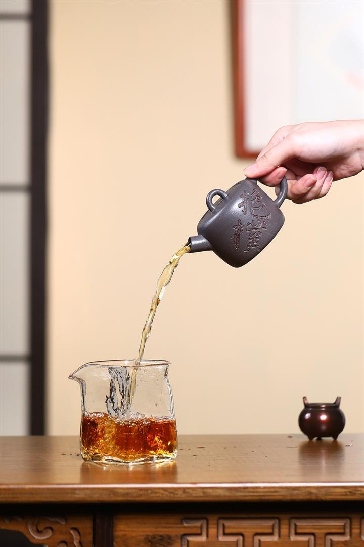 【泥料特點】砂土氣重,似淳實農民,日久使用,漸露鋒芒,養成變化,溫潤莊重。紫砂是壹種雙重氣孔結構的多孔性材質,氣孔微細,密度高。用紫砂壺沏茶,不失原味,且香不渙散,得茶之真香真味。紫砂使用越久,壺身色澤越發光亮照人,氣韻溫雅。紫砂壺長久使用器身會因撫摸擦拭,變得越發溫潤光澤。