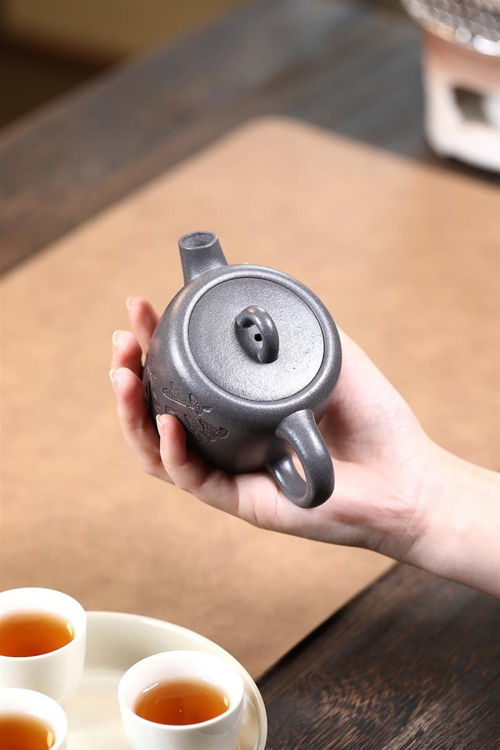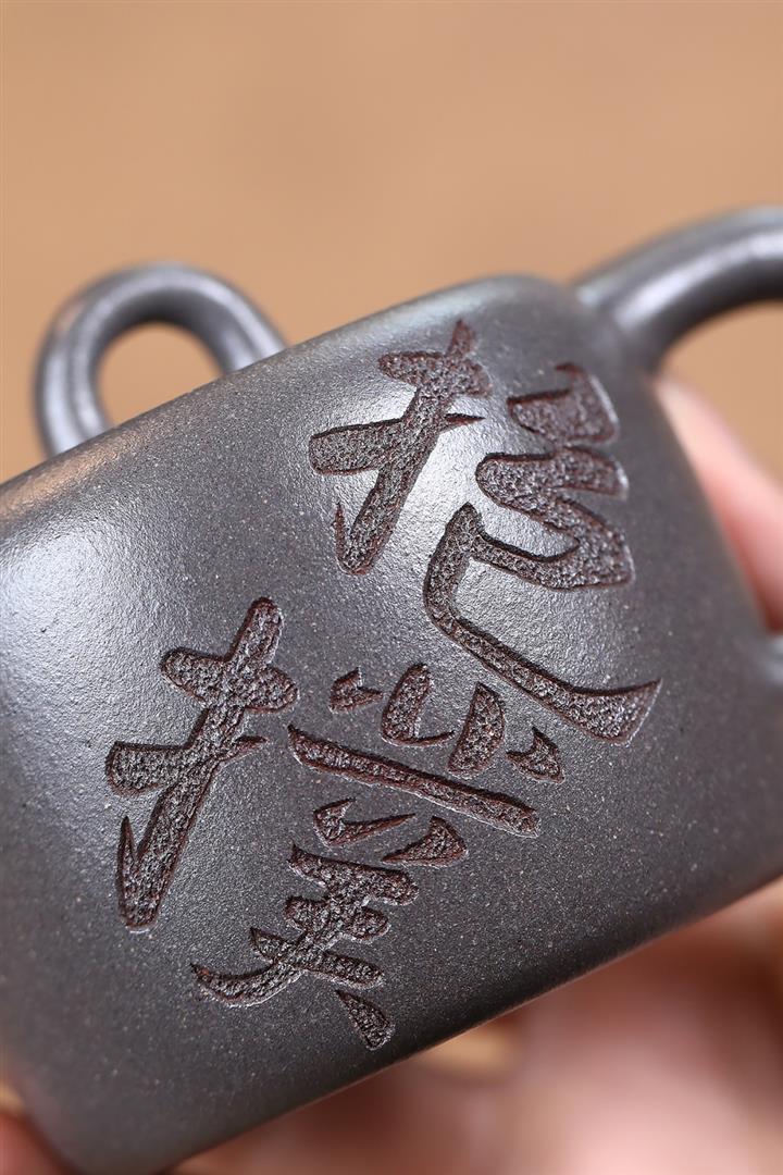 原礦黑金沙手工刻字畫茄瓜紫砂壺POT6493