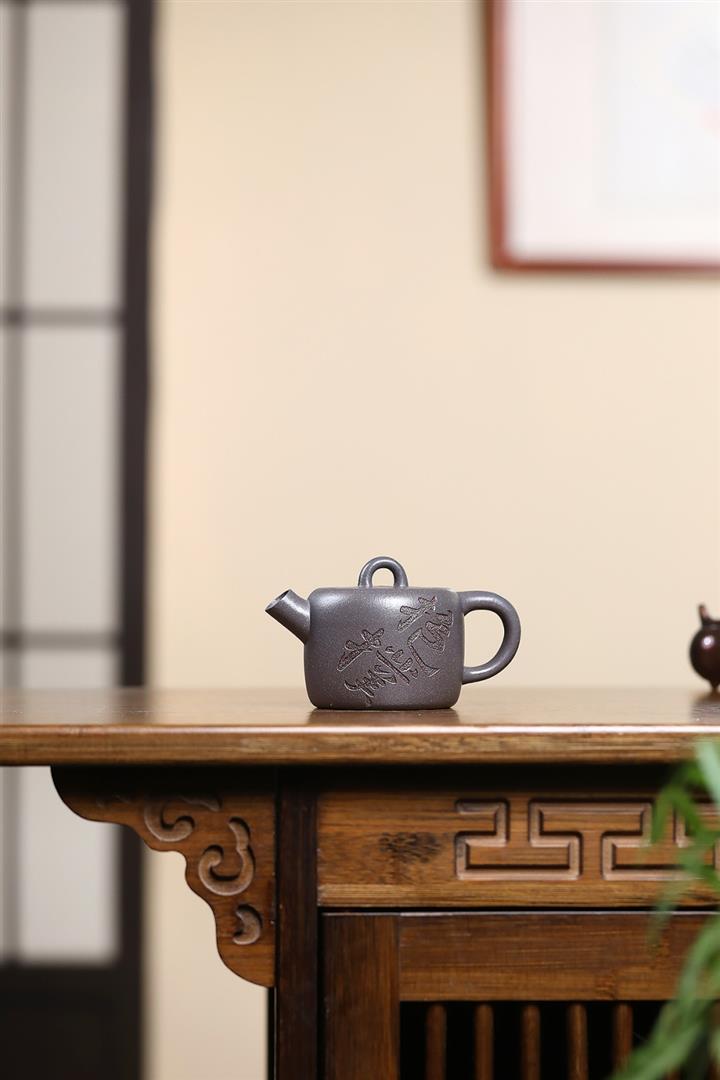 降坡泥手工刻字蒼晨月夕紫砂壺POT6485