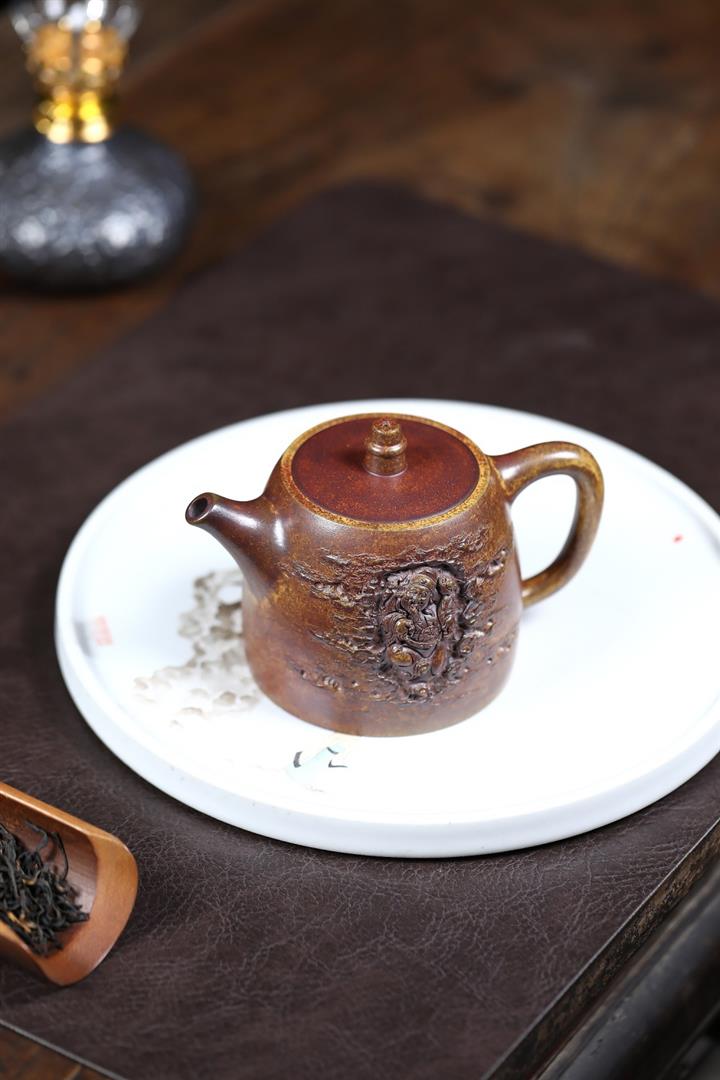 原礦石黃料茶道漢瓦紫砂壺POT4673