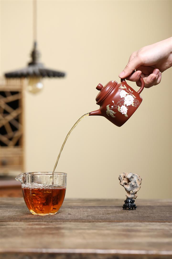 【泥料特點】砂土氣重,似淳實農民,日久使用,漸露鋒芒,養成變化,溫潤莊重。紫砂是壹種雙重氣孔結構的多孔性材質,氣孔微細,密度高。用紫砂壺沏茶,不失原味,且香不渙散,得茶之真香真味。紫砂使用越久,壺身色澤越發光亮照人,氣韻溫雅。紫砂壺長久使用器身會因撫摸擦拭,變得越發溫潤光澤。