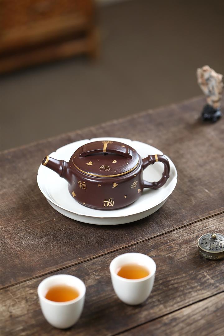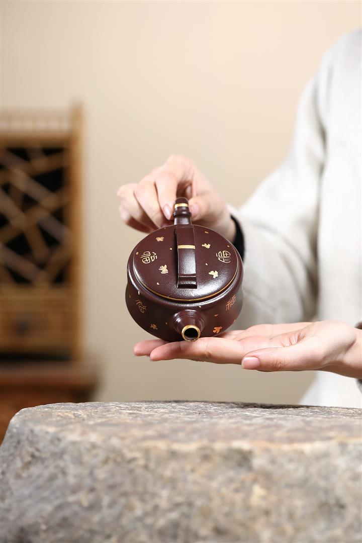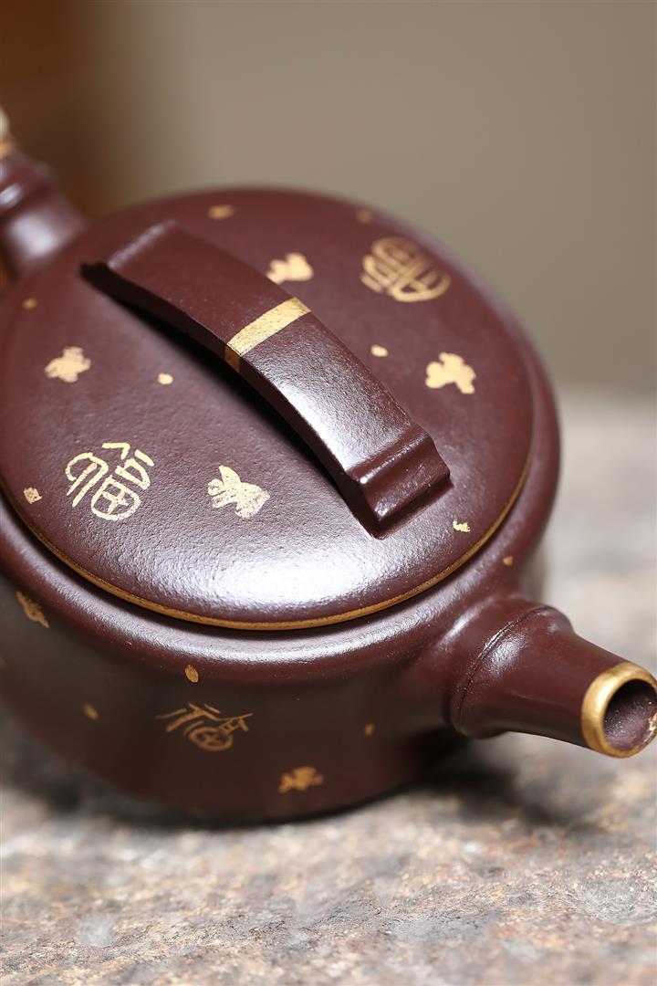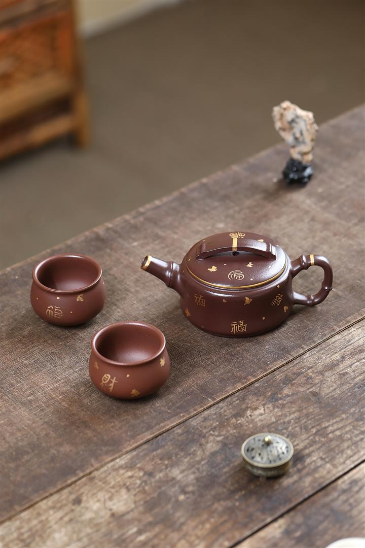 朱泥灑金德鐘壹壺兩杯套裝POT7635