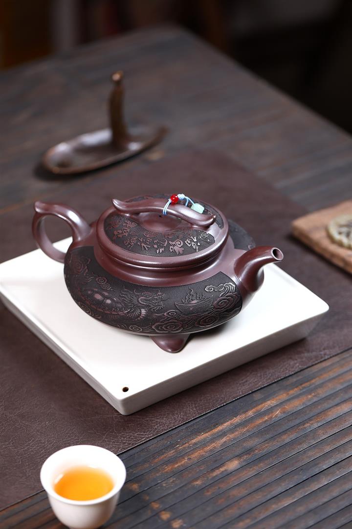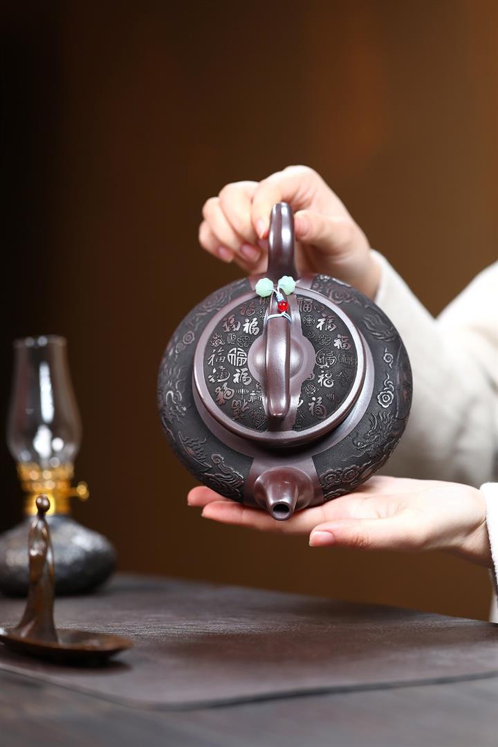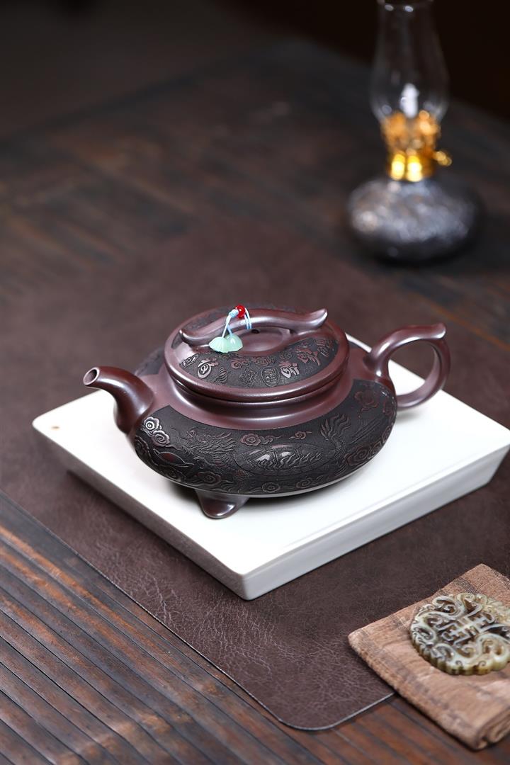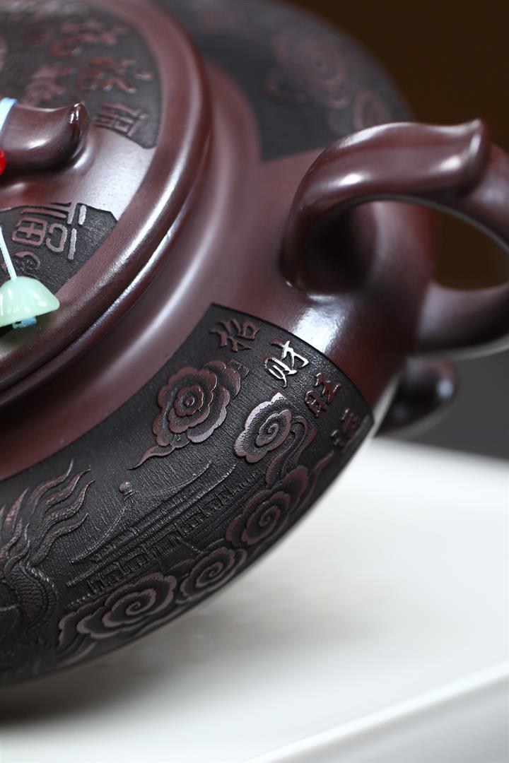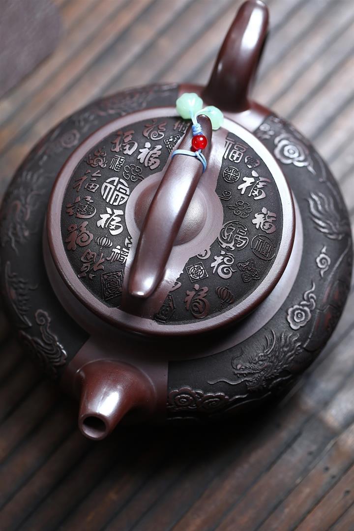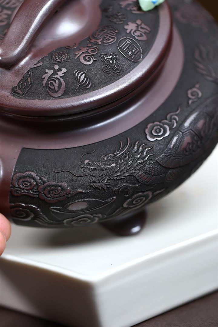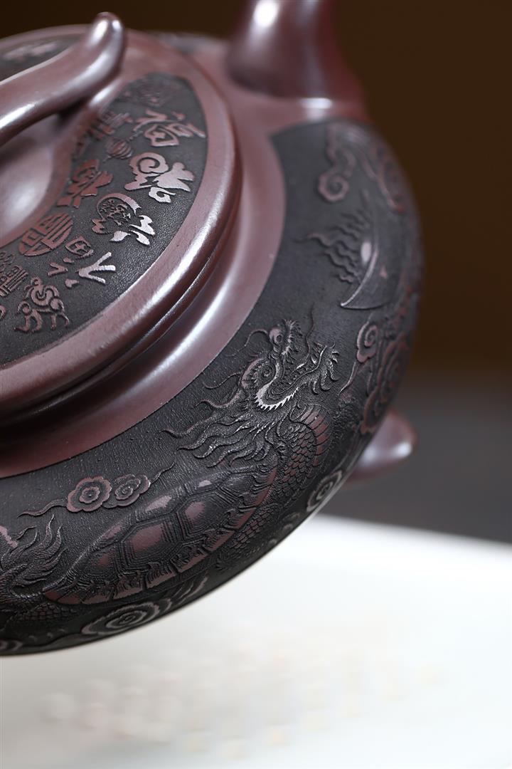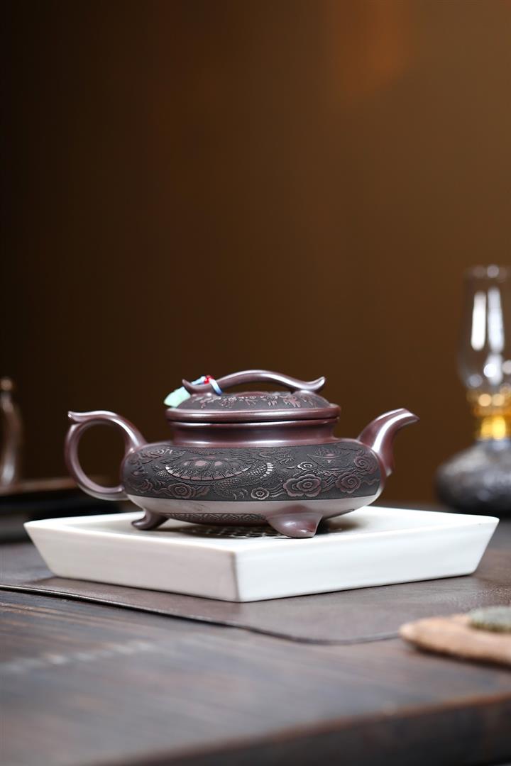 原礦石黃泥滿刻仙鶴龍蛋茶壺POT7409
