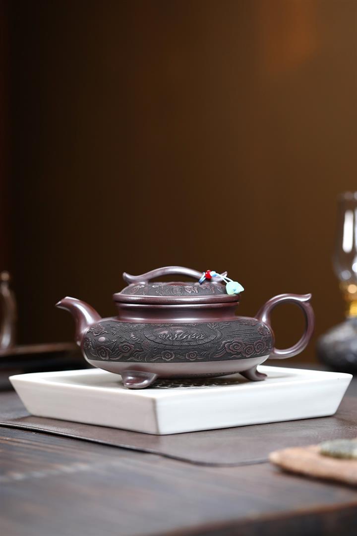 520cc原礦石紅泥福祿雲鼎茶壺POT9294