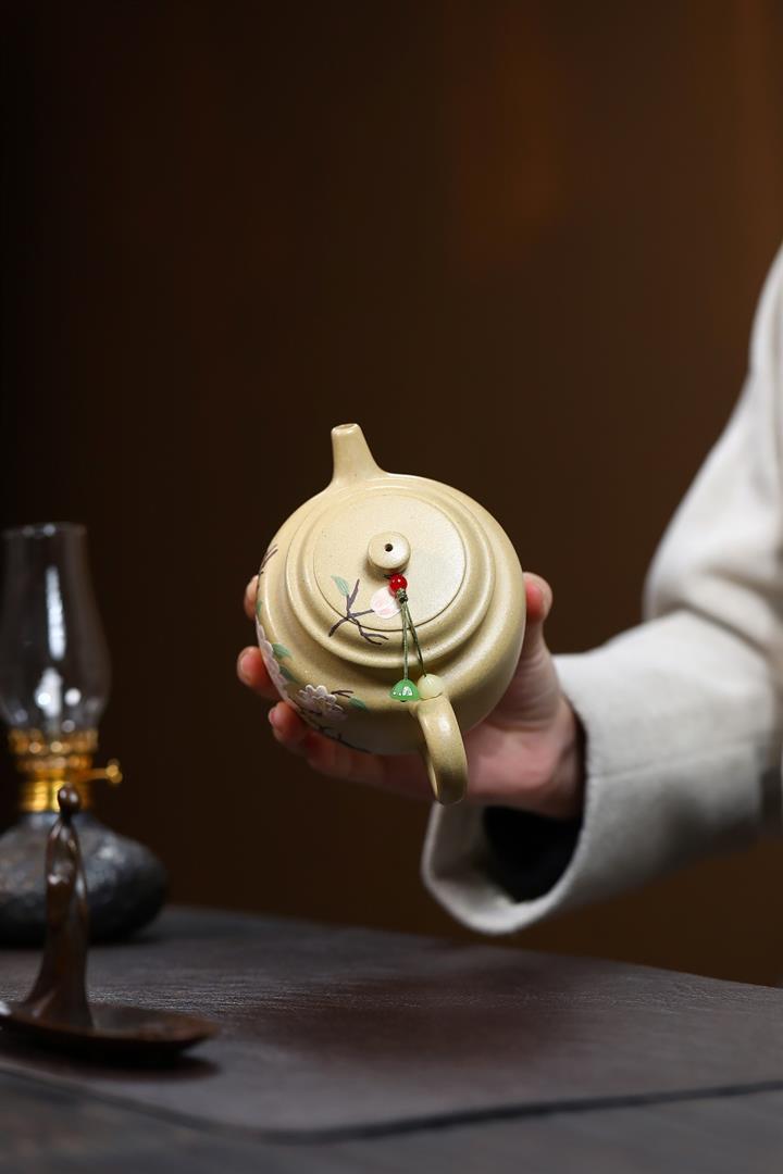 【作品介紹】此款壺形線條流暢,壺把,壺嘴,壺身壹氣呵成栩栩如生,是收藏把玩的好壺,泥料色澤古樸典雅,日久使用,漸露鋒芒,養成變化快,溫潤莊重,用其泡茶,使用的年代久,壺身就溫潤,泡出來的茶湯也就醇郁芳馨。