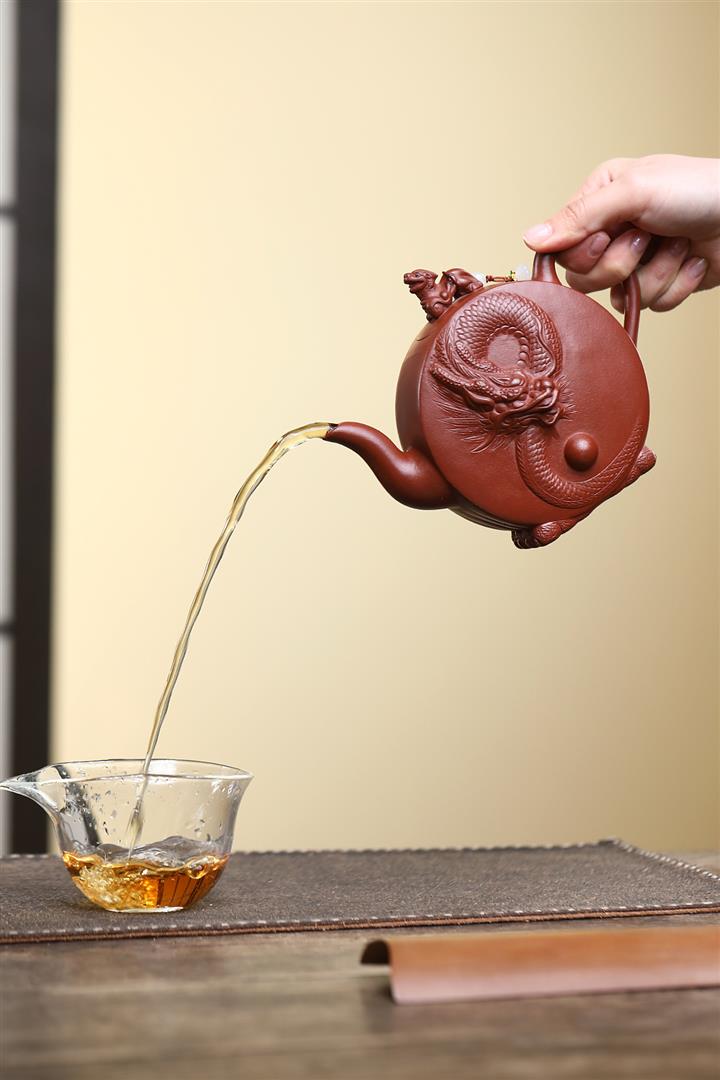 【泥料特點】砂土氣重,似淳實農民,日久使用,漸露鋒芒,養成變化,溫潤莊重。紫砂是壹種雙重氣孔結構的多孔性材質,氣孔微細,密度高。用紫砂壺沏茶,不失原味,且香不渙散,得茶之真香真味。紫砂使用越久,壺身色澤越發光亮照人,氣韻溫雅。紫砂壺長久使用器身會因撫摸擦拭,變得越發溫潤光澤。