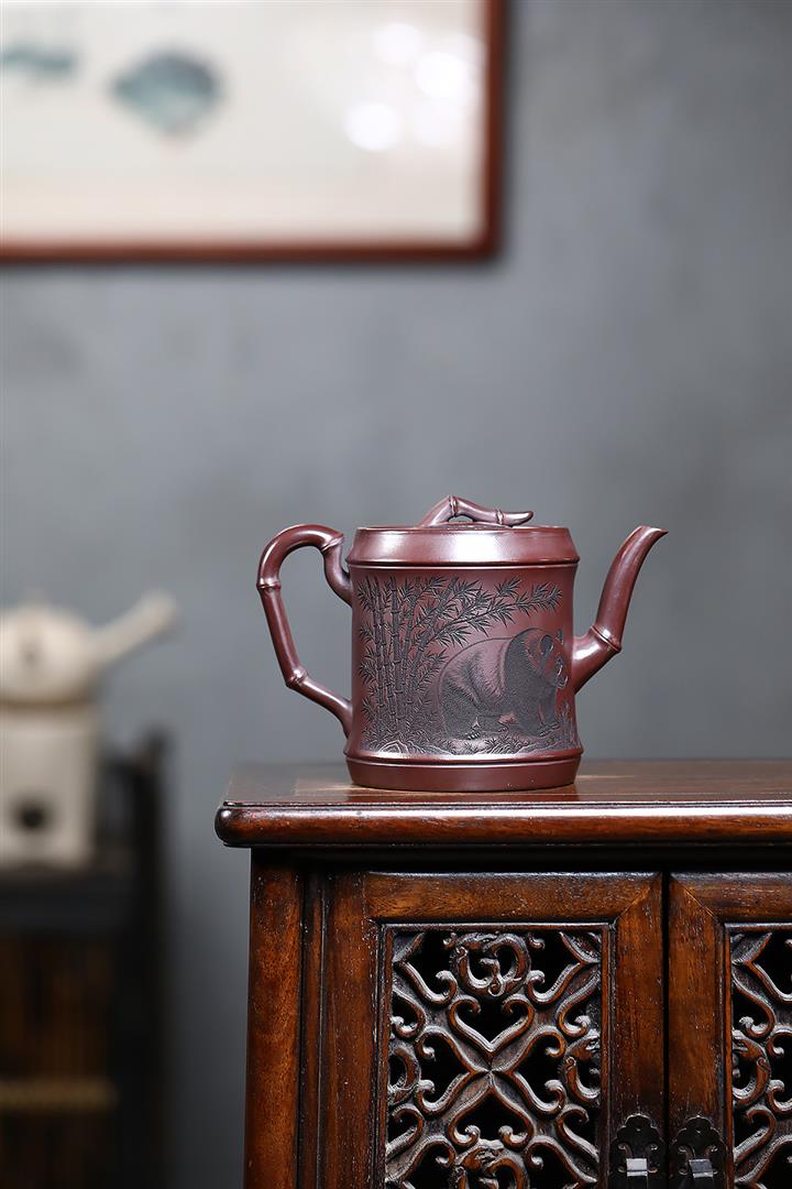 650cc原礦石紅熊貓圓竹泡茶壺POT9305